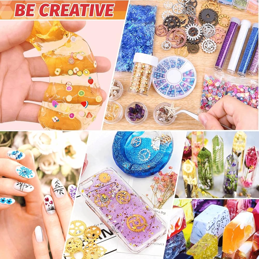 ☘️【استخدام واسع】يمكن وضع مجموعة مجوهرات الراتنج هذه في قوالب صب الراتنج والمجوهرات وغيرها من ديكورات الحرف اليدوية، مثل سلسلة مفاتيح الراتنج والقلادة والأساور والمزيد. أيضًا، يمكن تطبيقها على مشروع الحرف اليدوية DIY، والسلايم، وسجلات القصاصات، وفن الأظافر، ودعوات الحفلات، وبطاقات المعايدة، وأكواب الإيبوكسي والمزيد.
