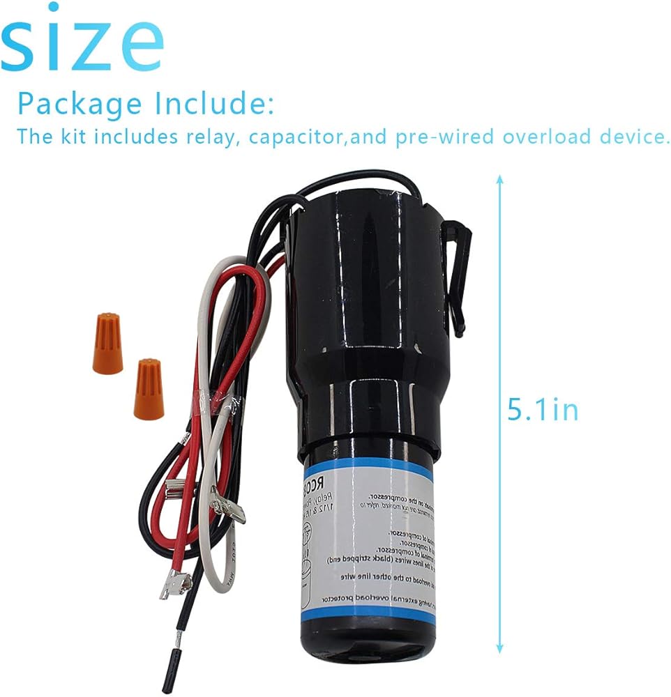 Application:For all capillary systems.Select the right match to replace refrigerator compressor relay and overload units from 1/12 through 2/3 hp, 115-230 VAC