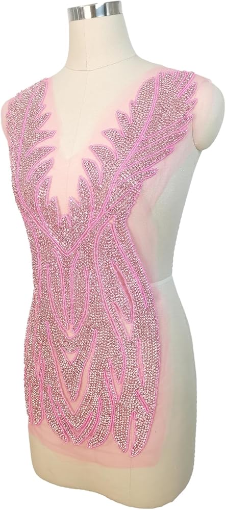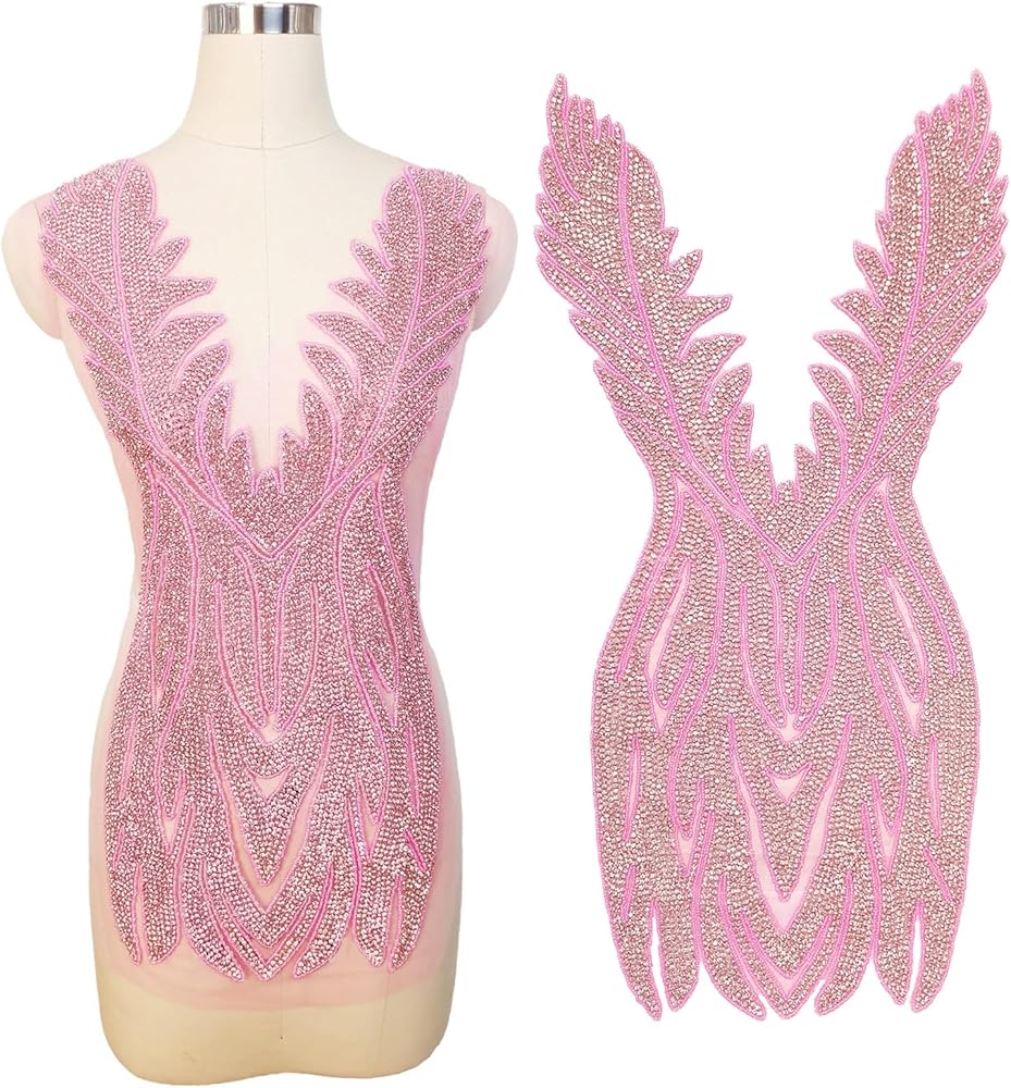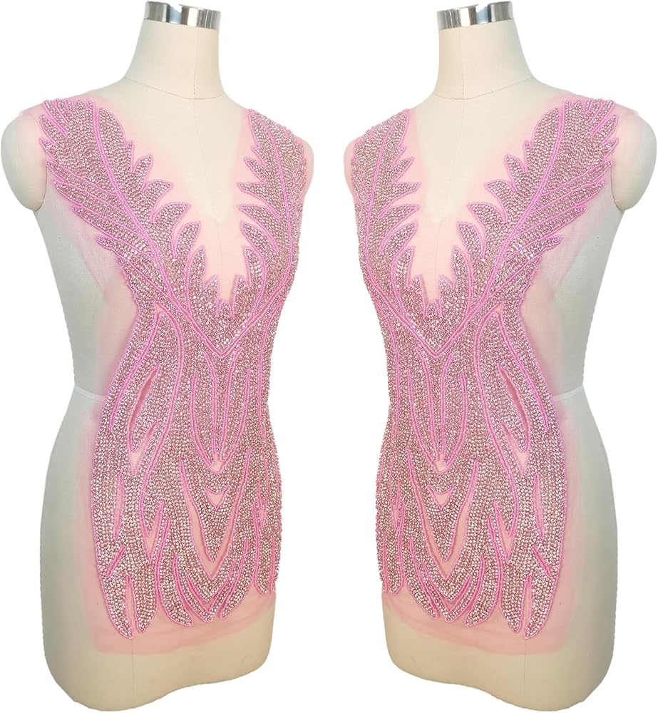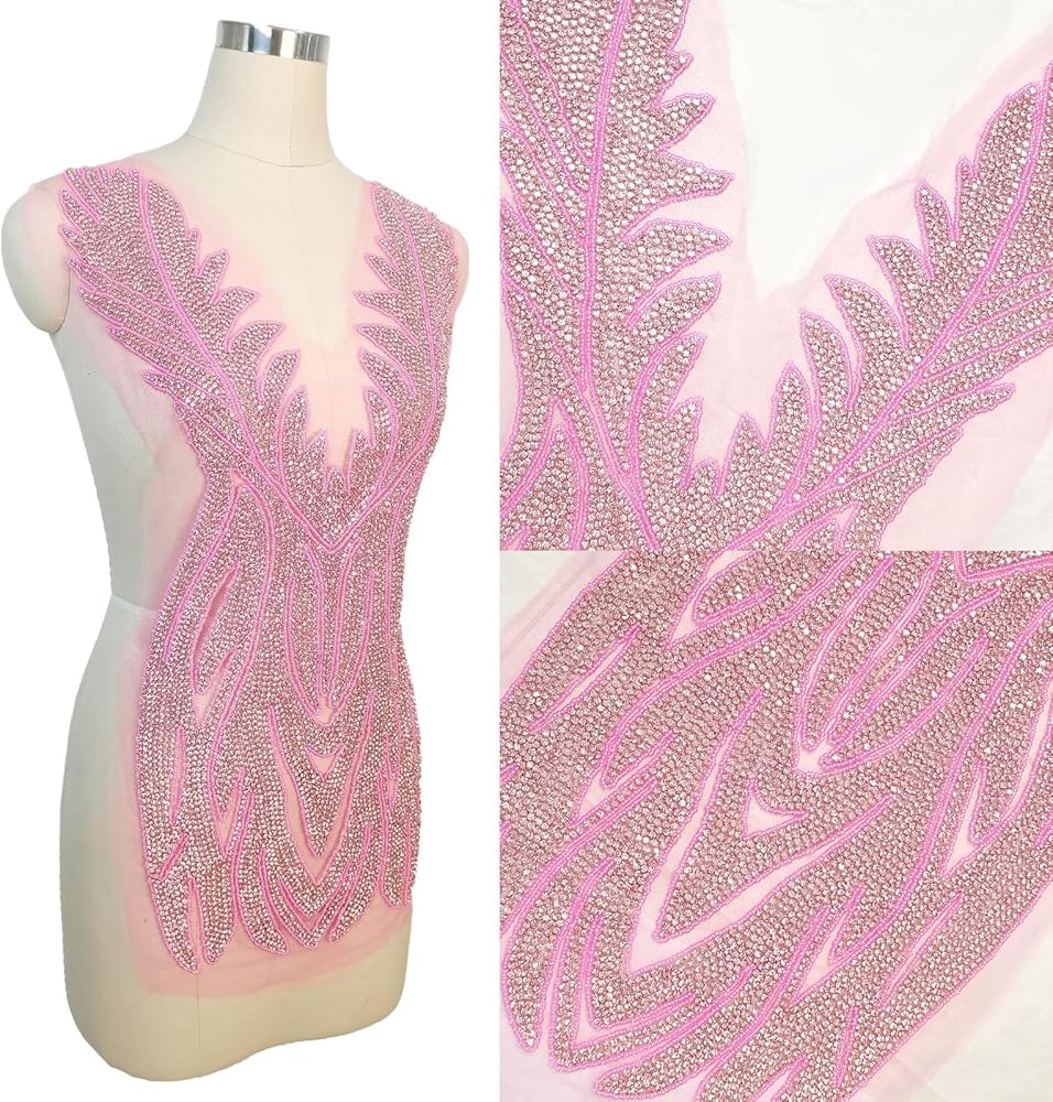 ملحوظة: ظهر شبكي من البوليستر، مما يجعل من السهل تنفيذ المشروعات بنفسك، مناسب فقط للخياطة أو غراء القماش على الملابس (لا يوجد غراء على الظهر)، غير مناسب للكي. ثم قم بقطع القماش الزائد، ولا تقطع الخرز. لا يمكن تنظيف هذا الملصق المصنوع من حجر الراين إلا بالتنظيف الجاف.