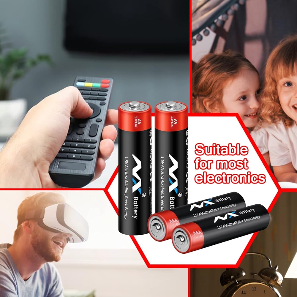 🔋صديقة للبيئة: البطاريات القلوية 1.5 فولت لا تحتوي على الزئبق أو الكادميوم لحماية البيئة وتوفير الموارد. (تتضمن 20 بطارية قلوية AAA وAA و9 فولت)