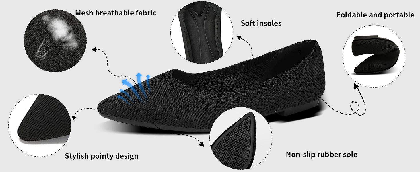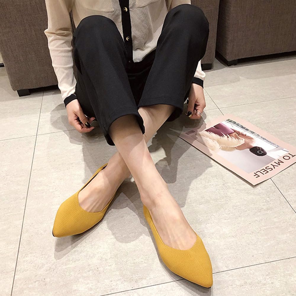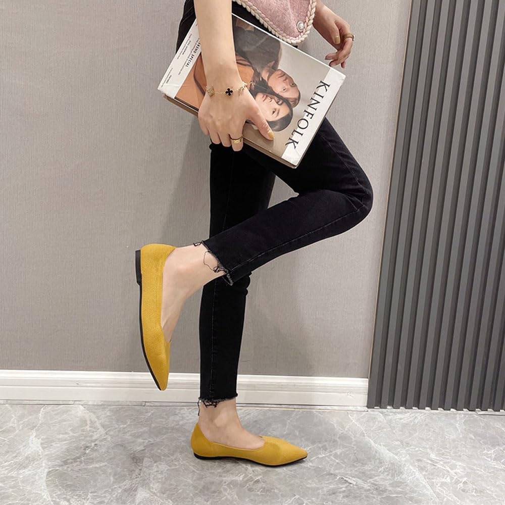 أحذية JBB النسائية المسطحة بمقدمة مدببة أحذية الباليه المحبوكة بكعب منخفض سهلة الارتداء للمشي فستان كاجوال بدون كعب أصفر 6.5