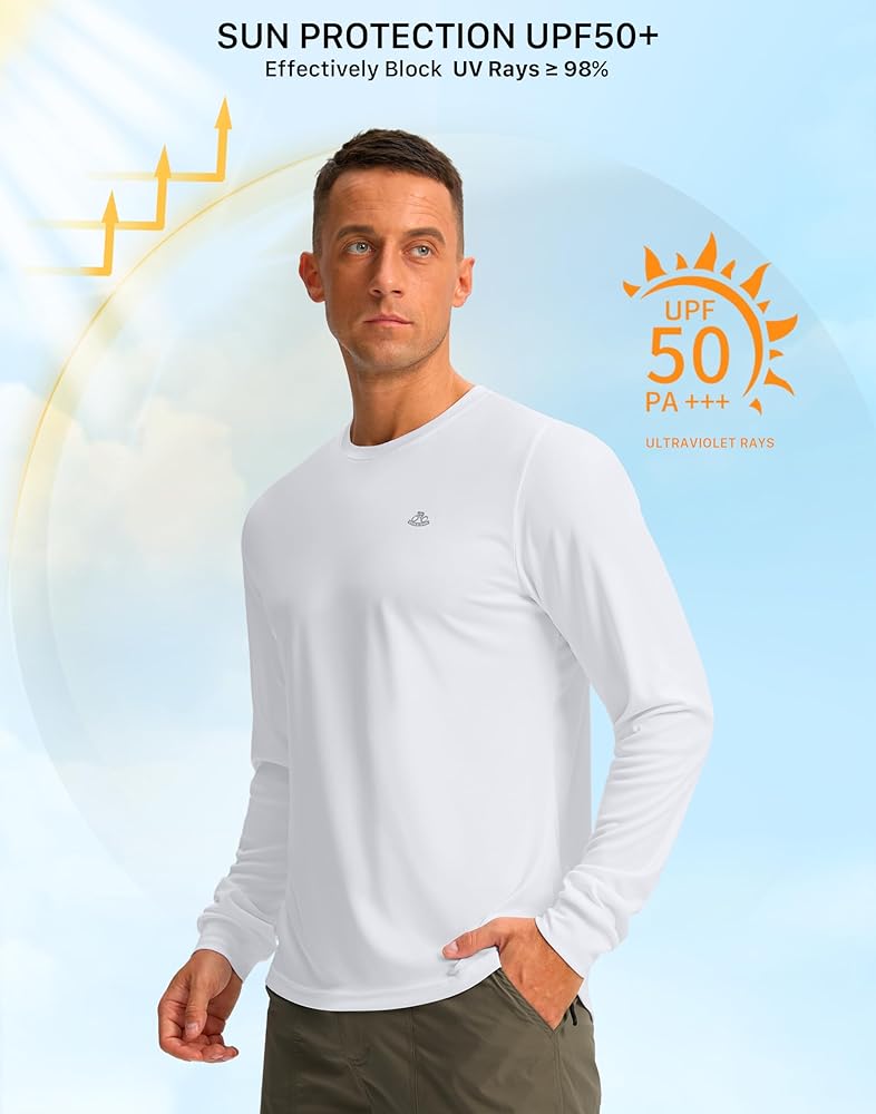 الحماية من الشمس: احمِ بشرتك من أشعة الشمس فوق البنفسجية فئة A وB الضارة باستخدام نسيج UPF 50+ الخاص بنا. تحجب قمصاننا الشمسية الأشعة فوق البنفسجية بنسبة 99%، مما يحافظ على بشرتك الحساسة آمنة في الصيف