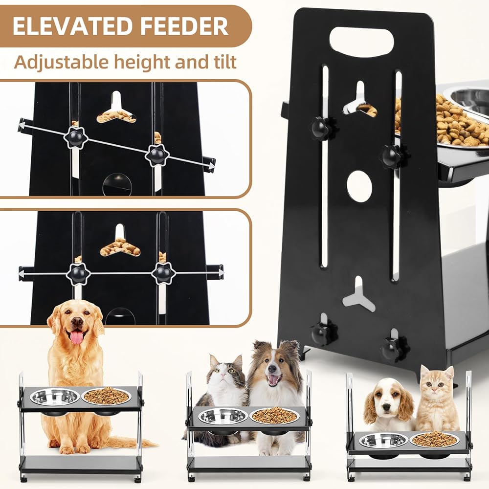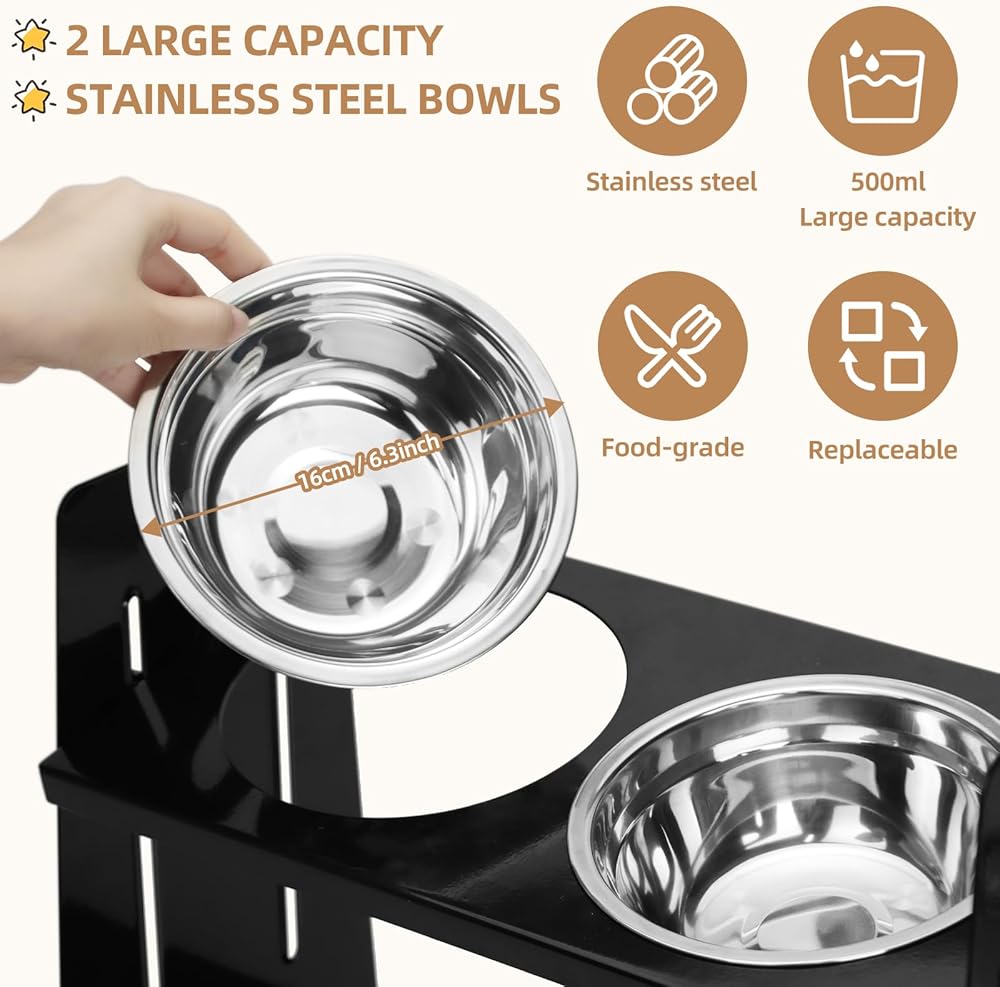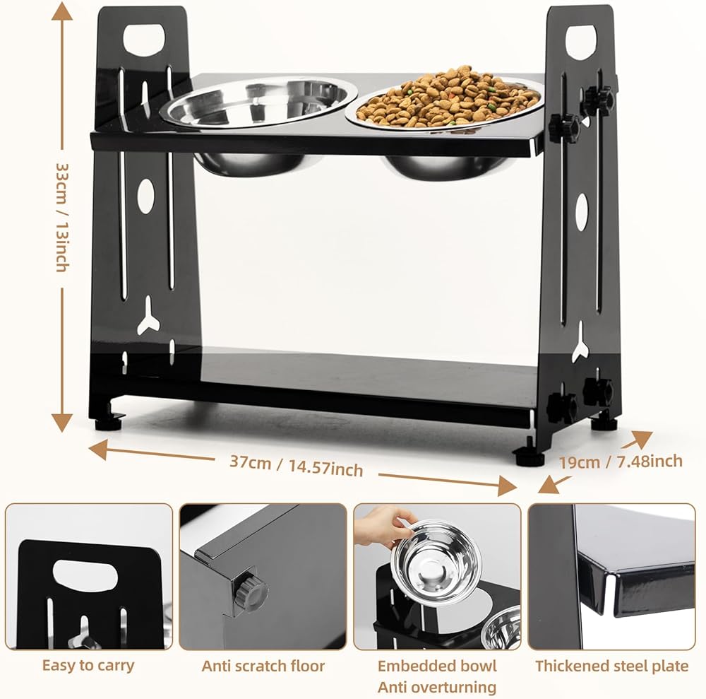 ارتفاعات قابلة للتعديل - مجموعة أوعية الكلاب المرتفعة لدينا يمكن أن تتكيف مع ارتفاعات مختلفة (تتراوح من 3.54 بوصة إلى 10.62 بوصة). يمكن أن يرافق حيوانك الأليف إلى مراحل مختلفة من النمو، ويحمي عموده الفقري، ويساعد في عملية هضم أكثر صحة.