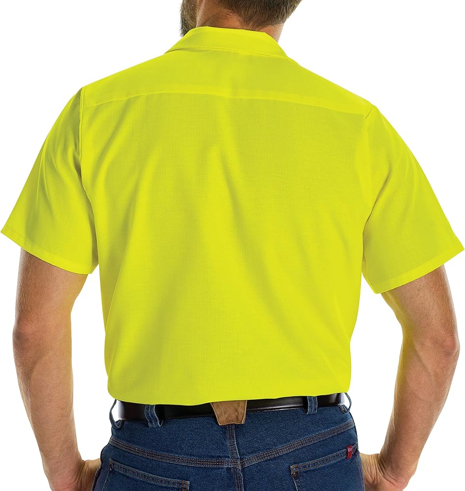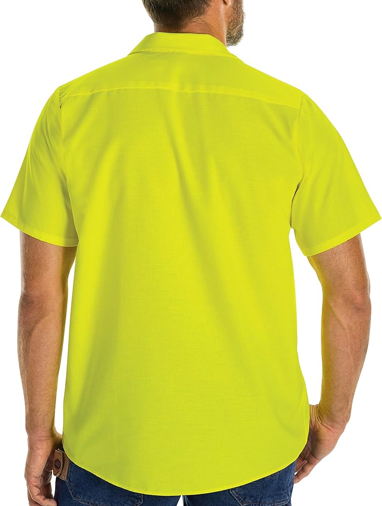 Don't let your work steal the spotlight - present yourself in the best light in our fluorescent yellow Enhanced Visibility Ripstop Work Shirt. Whether you're meeting with clients in the main office or working with the crew on the job site, the lined collar with sewn-in stays and button-front closure keep you looking professional and in the spotlight no matter where you're spending the work day.