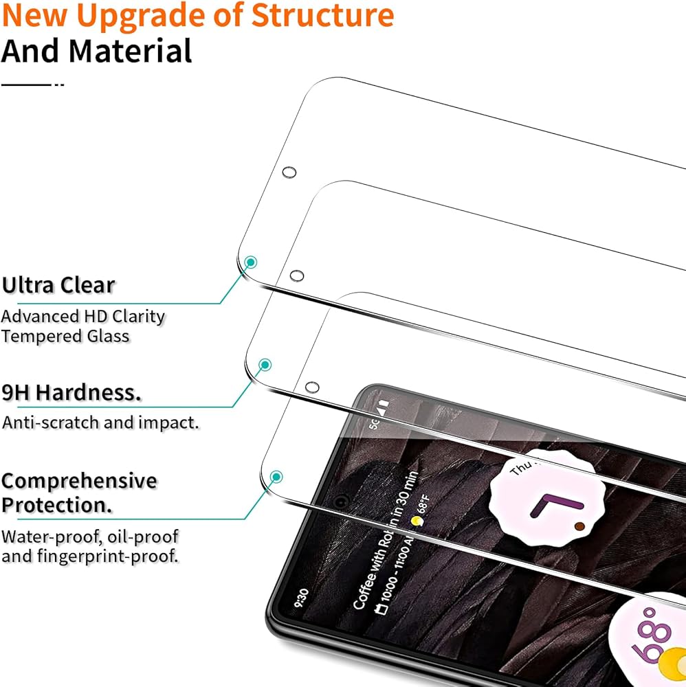 [تصميم فائق الدقة] يحافظ على جودة العرض الأصلية عالية الوضوح وحساسية اللمس لتجربة مستخدم سلسة. لا يؤثر على الفلاش ويجعل نفاذية الضوء تصل إلى 99.99%، مما يوفر جودة صورة واضحة وتوافق مع معرف الوجه.