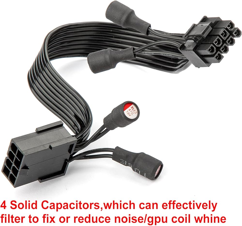 8 Pin to 8 Pin (6+2pin) PCIE Cable: the pcie cable comes with 4 filter capacitors, will fix or reduce the coil whine of most graphics card