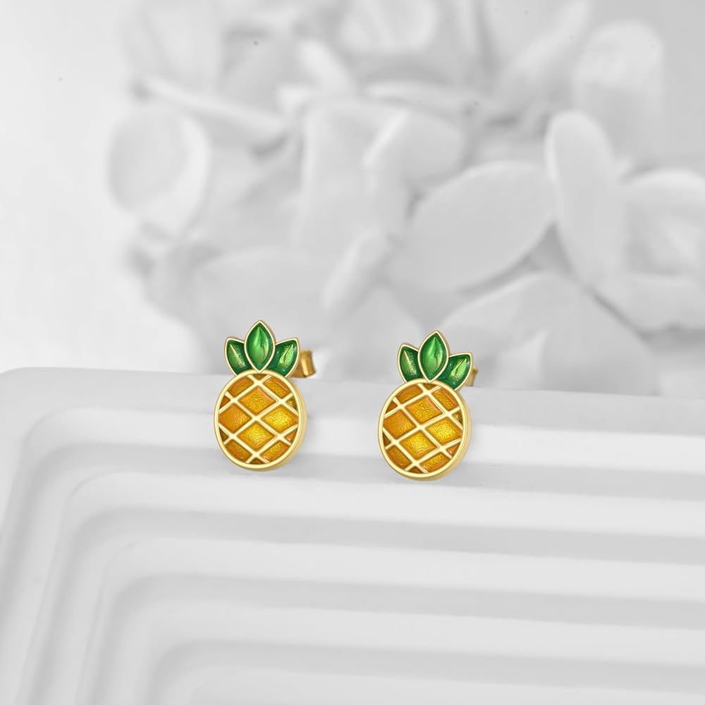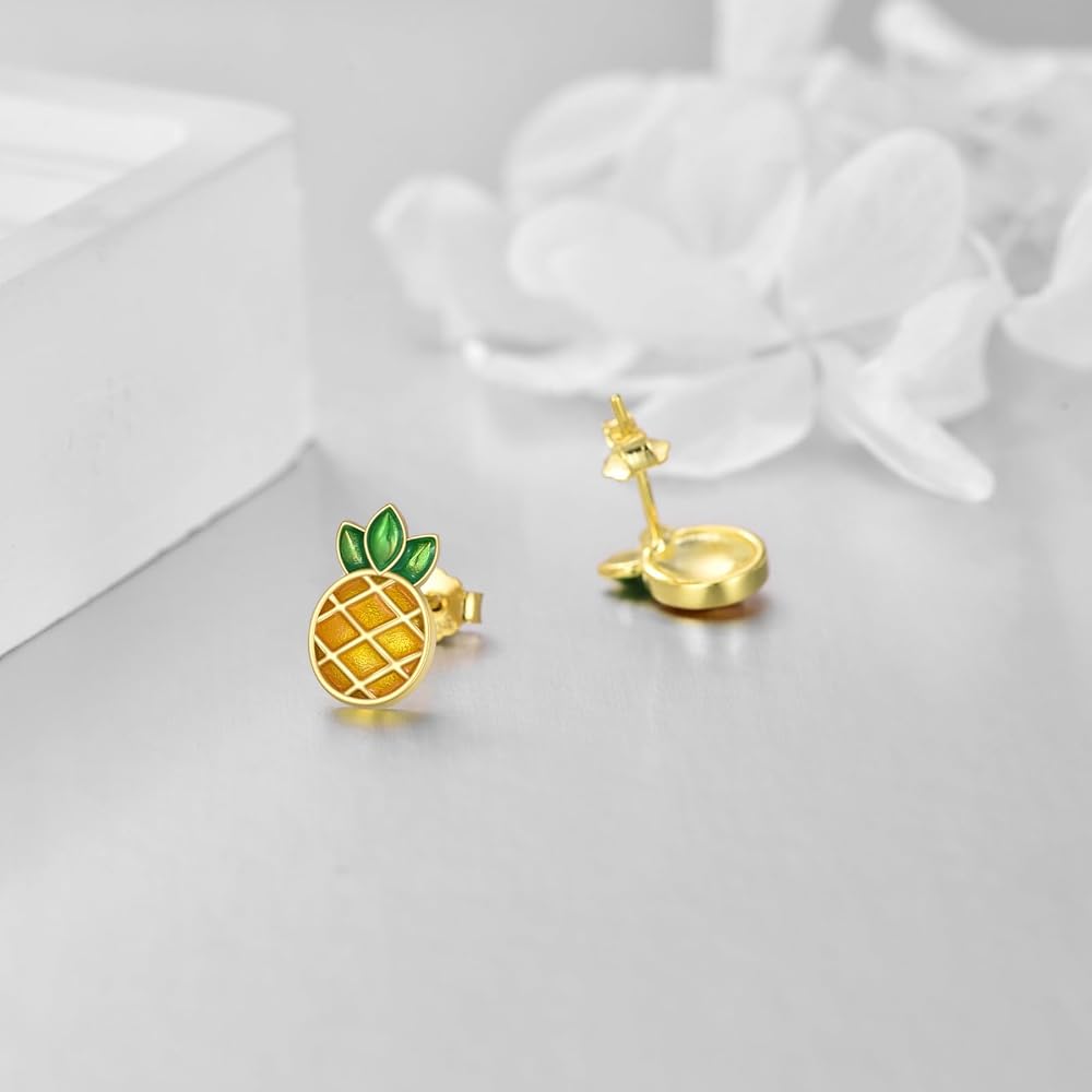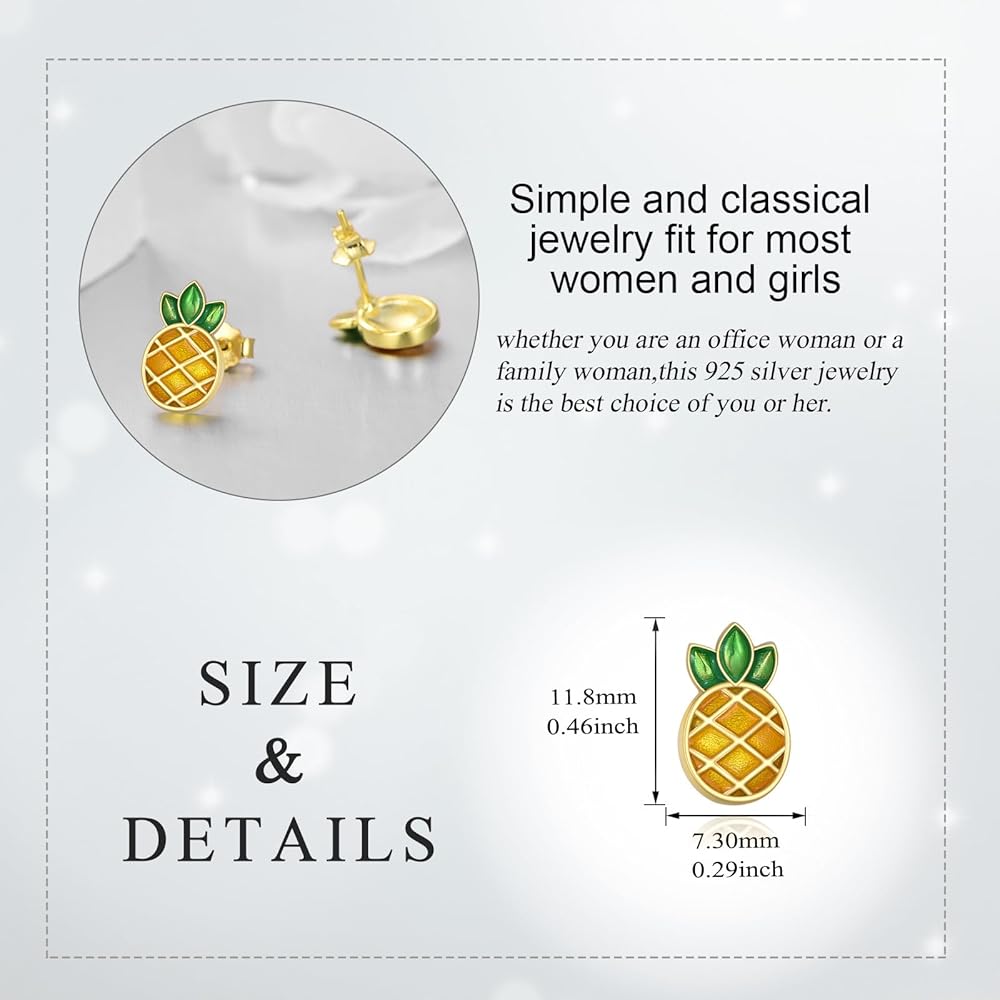🍍【مقاس أقراط الأناناس من الفضة الإسترلينية】: 11.8 مم × 7.3 مم، الوزن: 1.9 جم (زوج)، أقراط خفيفة الوزن تناسب جميع النساء والفتيات.