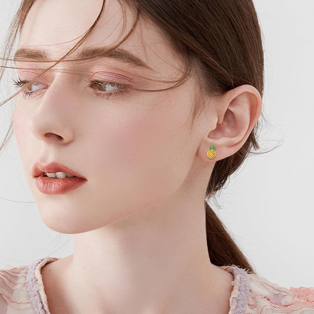 🍍【مادة أقراط الأناناس 】: أقراط الأناناس مصنوعة من الفضة الإسترلينية عيار 925، ولمسة نهائية عالية التلميع ومقاومة للتشوه، ولن يتغير لونها وتصبح داكنة عند ارتدائها مدى الحياة.