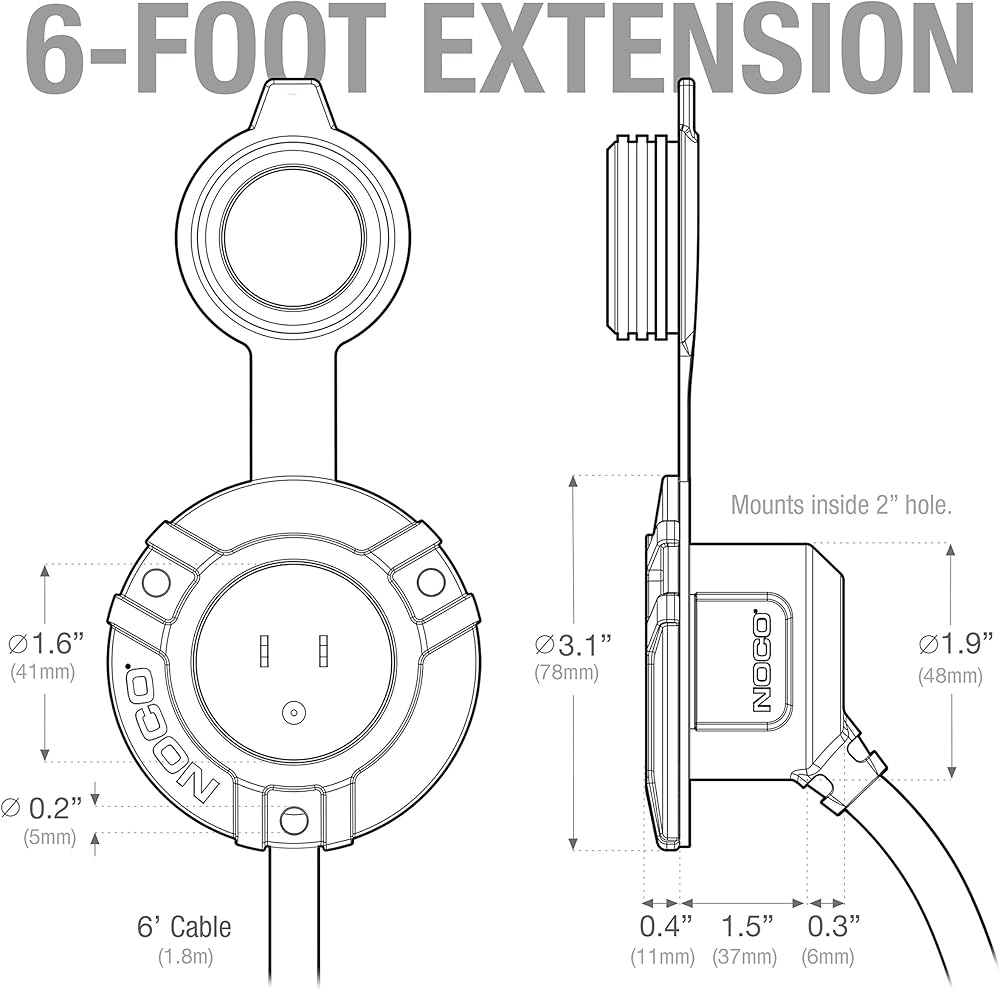 The GCP1E is an ac port plug, power inlet, and waterproof electrical outlet with a 6-foot integrated outdoor extension cord that offers optimal flexibility and ease of installation. It works with any extension cord and requires no cable modifications or hand wiring. Its sleek, ultra-low-profile design not only works seamlessly on any application but includes a pressure-fit cap for a watertight seal. And it makes onboard battery charging ports, engine block heaters, or outdoor electrical outlets more accessible than ever before - giving you endless possibilities. Rated at 15-amps, 125-volts (14AWG), designed for use with all types of extension cords with Type-B plugs, and UL approved. Ideal for car, boat, marine, truck, trailer, pickup, RV, industrial and electrical applications.