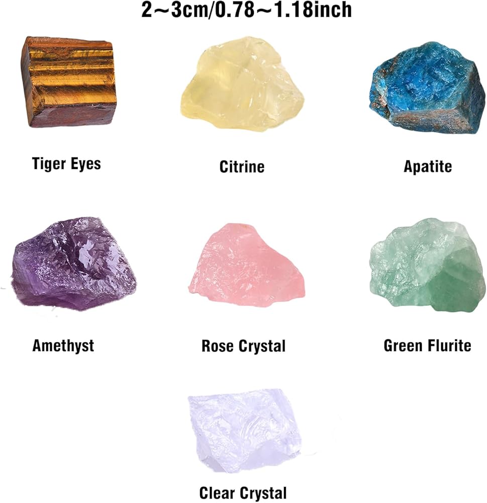 مجموعة بلورات شفاء 7 قطع من البلورات الحقيقية والأحجار الخام الطبيعية والكريستال الخام الكبيرة والأحجار الكريمة العلاجية ومجموعة أحجار الشفاء والكريستال للتأمل واليوجا