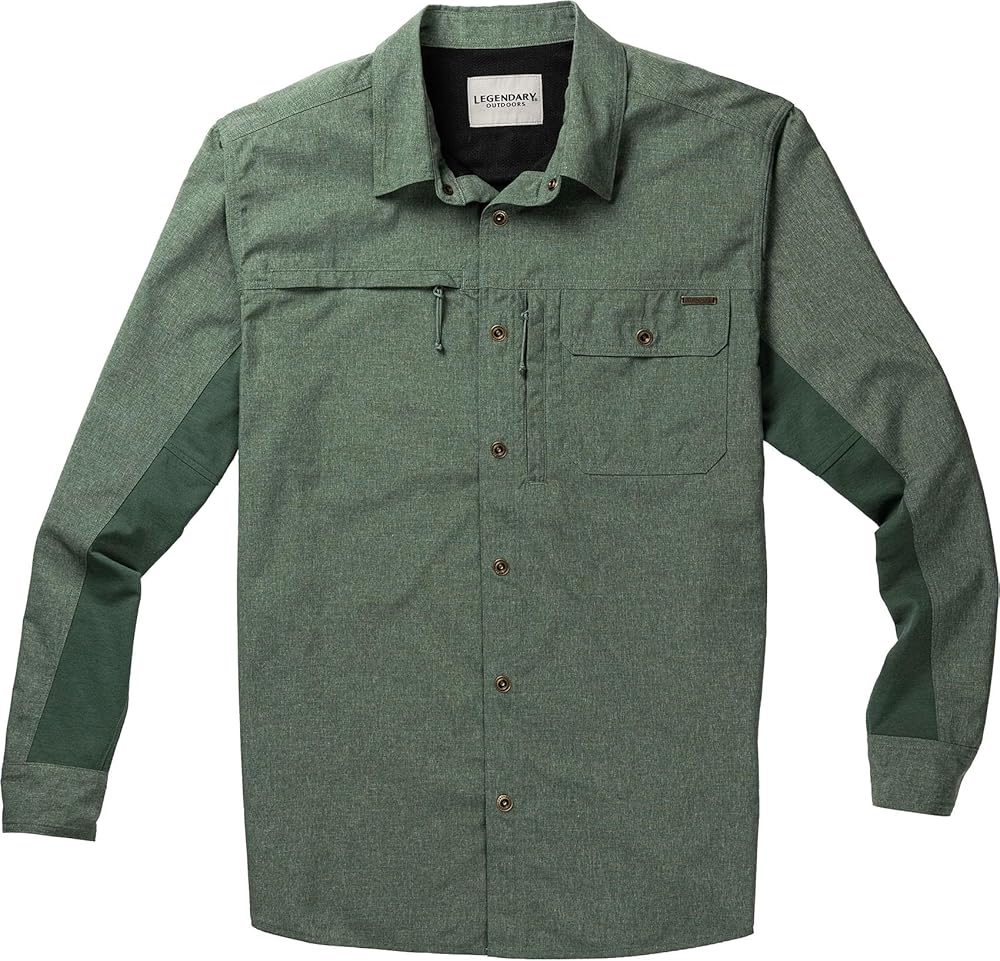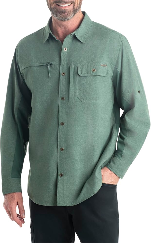 Get ready to explore the outdoors in our Legendary Outdoors® collection. Wardrobe essentials that are built for performance, but are perfect for everyday. Elevate your outdoor experience with our Men's Convertible Moisture-Wicking Long Sleeve Fishing Shirt- the perfect companion for avid anglers and outdoor enthusiasts. Crafted with precision and designed for functionality, this shirt seamlessly combines style with performance.
