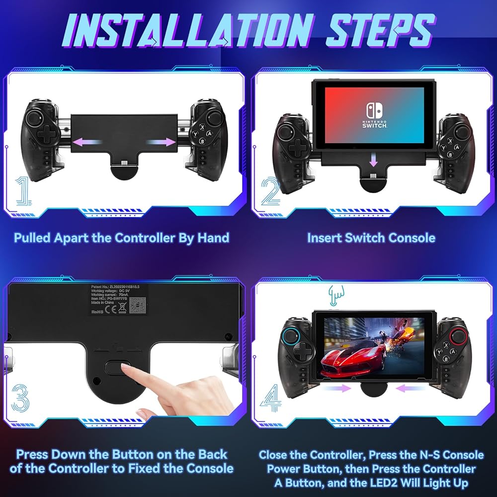 🎮【وحدة تحكم سلكية سهلة التوصيل】 أولاً، يرجى فتح "الاتصال السلكي لوحدة التحكم الاحترافية" لوحدة التحكم الخاصة بك. أدخل وحدة التحكم في التبديل وقم بتشغيلها. اضغط على مفتاح وحدة التحكم. يتم استخدام وحدات التحكم في المفاتيح هذه عبر واجهة USB-C لتوصيل وحدة التحكم للحصول على تحسين كبير في مشكلة التأخر، فقط قم بالتوصيل والاستخدام دون تأخير. استمتع بلعبتك بحرية تحت الطراز المحمول باليد. (يرجى ملاحظة مكان الإبزيم أثناء توصيل وحدة التحكم).