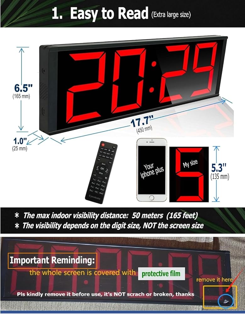 · Clock Size: 17.3'' L x 6.5'' H x 1'' W (440mm * 165mm * 25mm)