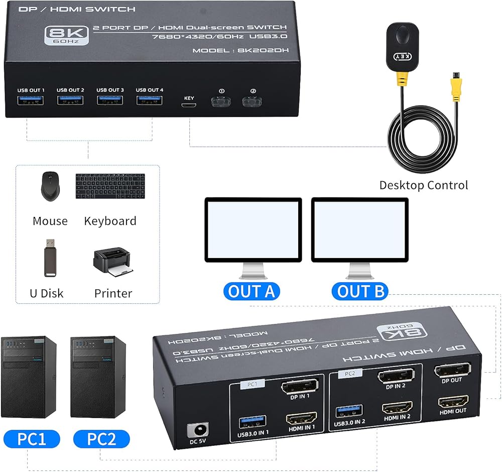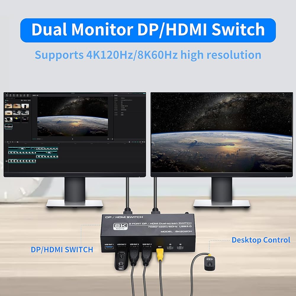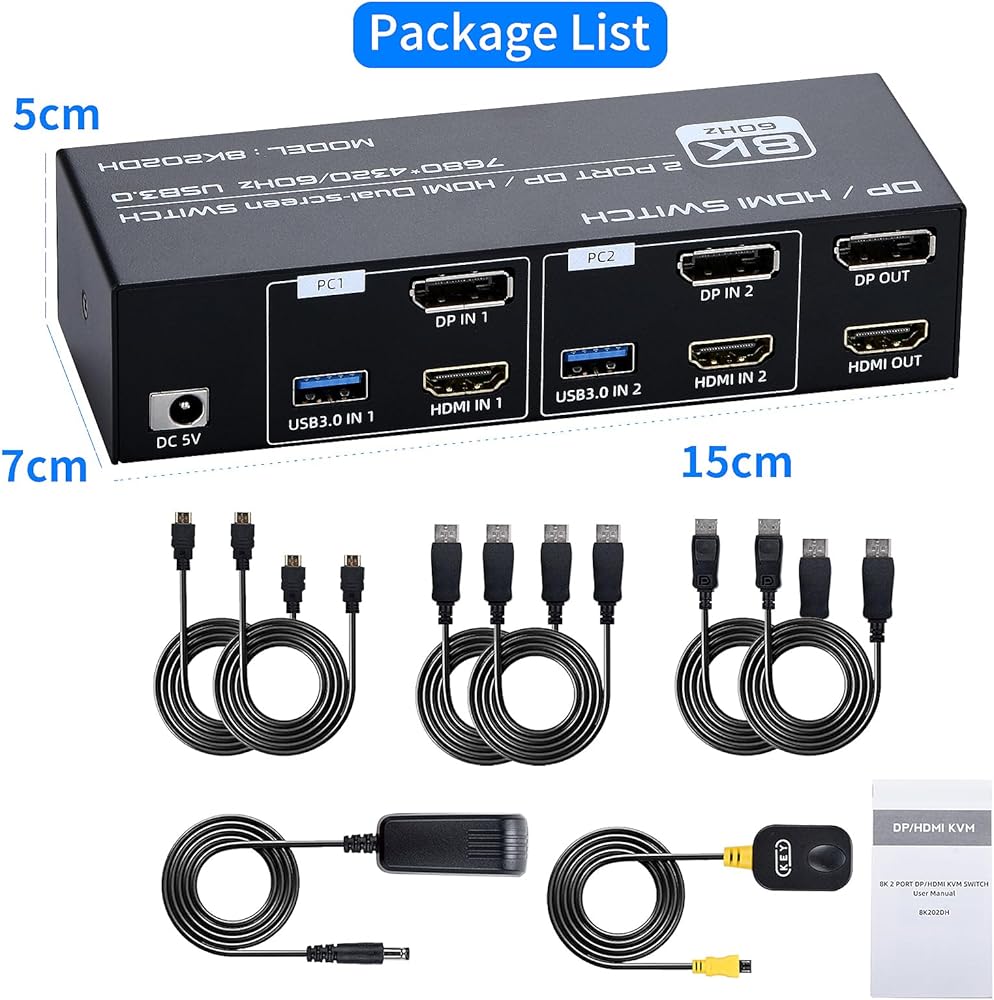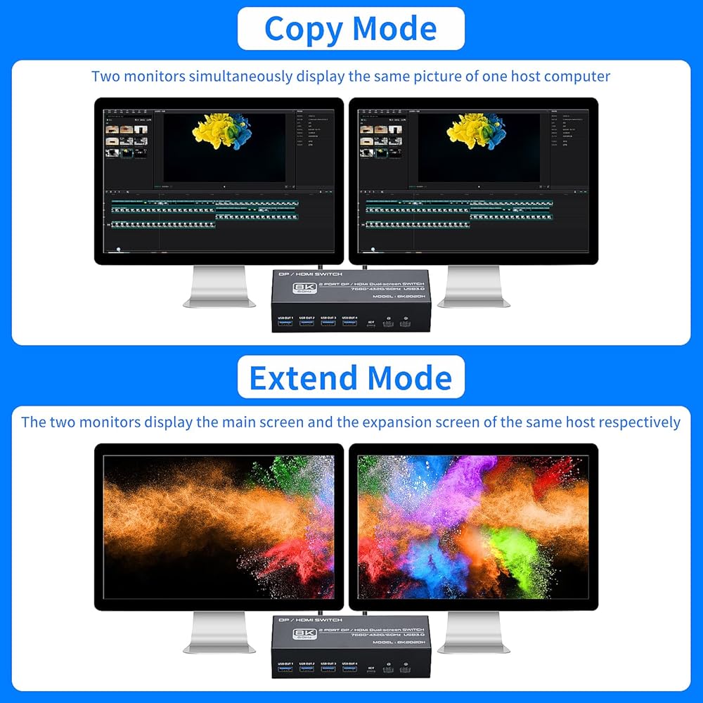 ✅[𝐃𝐏 + HDMI 𝐊𝐕𝐌 𝐒𝐰𝐢𝐭𝐜𝐡] يتيح لك جهاز KVM هذا التبديل بحرية بين جهازي كمبيوتر أو مصدر إشارة آخر، والعرض على شاشتين و4 منافذ USB 3.0. كما أنه يدعم عرض الوضع الممتد ووضع النسخ، إذا كان جهاز الكمبيوتر الخاص بك يدعم عرض الشاشة المزدوجة ولديه وظيفة ممتدة أو نسخ.