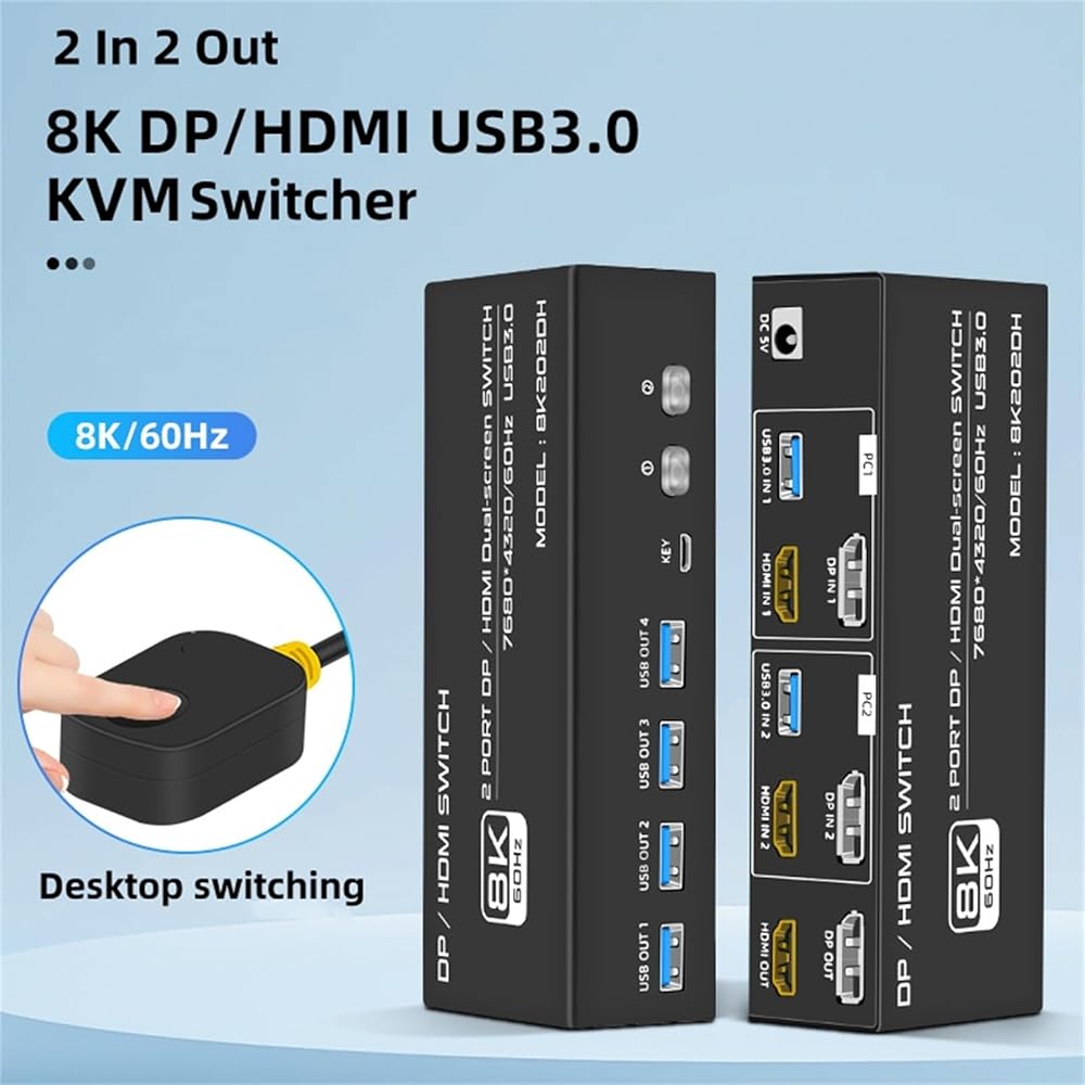 ✅[𝐔𝐥𝐭𝐫𝐚 𝟖𝐊@𝟔𝟎𝐇𝐙]يدعم مفتاح Displayport KVM هذا دقة تصل إلى 8K@60 هرتز 4K@120 هرتز، مما يجعل عرض الصورة أكثر تفصيلاً وواقعية وواضحة ومستقرة. فهو يوفر تجربة بصرية فائقة. (إذا كنت ترغب في تحقيق دقة 8K، فأنت بحاجة إلى استخدام كابل DP1.4).