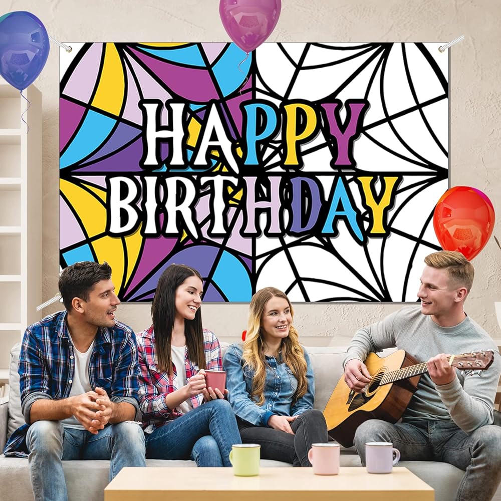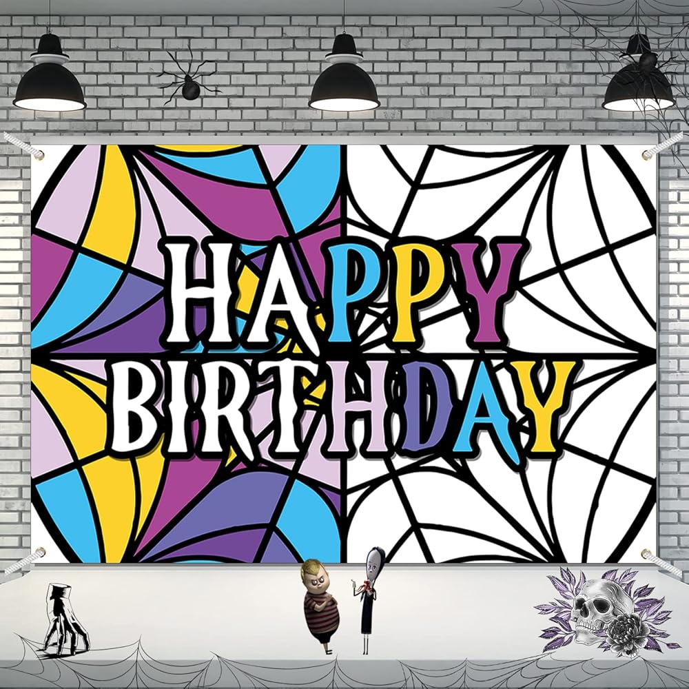 زينة عيد ميلاد الأربعاء آدامز، لافتة خلفية عيد ميلاد سعيد ملطخة لمستلزمات حفلات أعياد الميلاد مقاس 5 × 3 أقدام