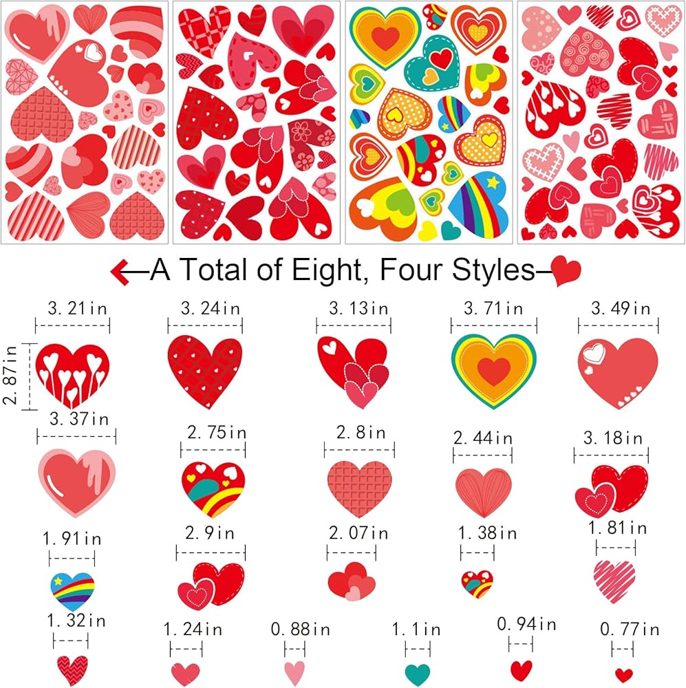 Multi Places to Decor. You may decorate your home, class rooms, stores, halls and so on. You can coordinate with other heart hanging, banners, garlands, wreaths to bring out love feel. Total 8 sheets, approx. 194pcs in different stickers, also can store them for future seasons!