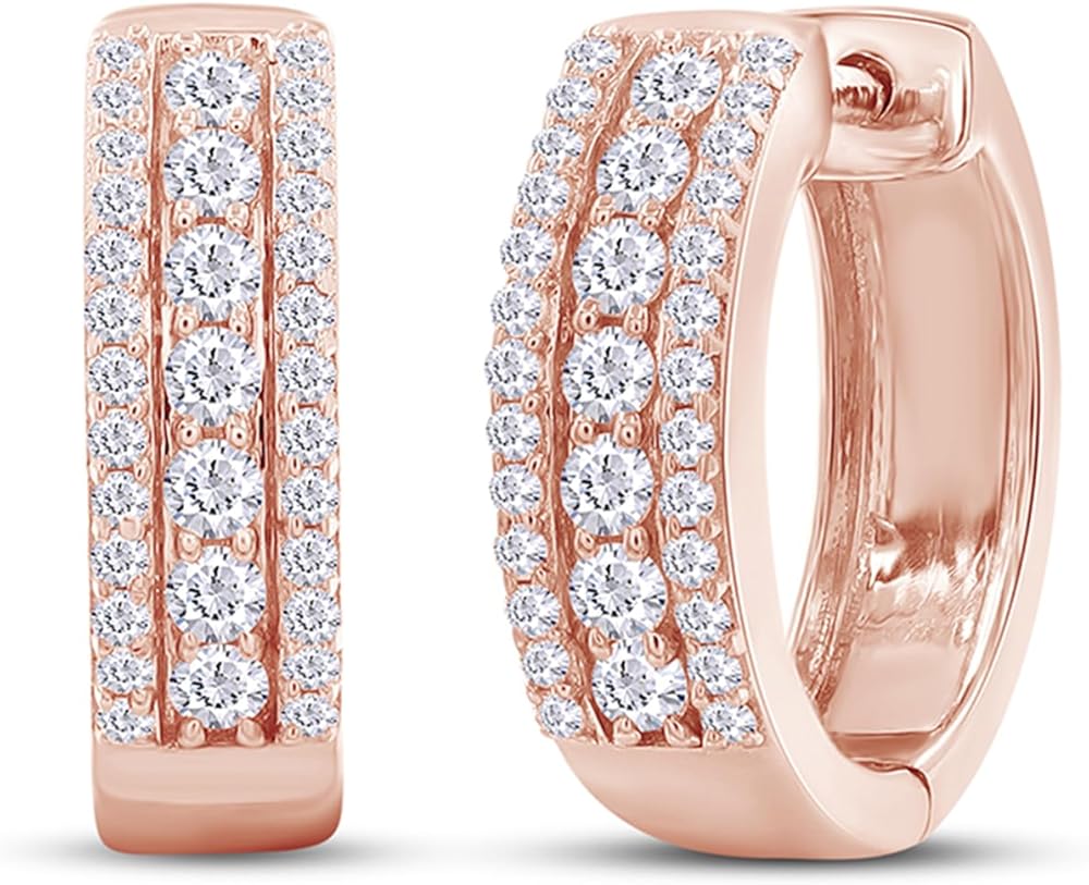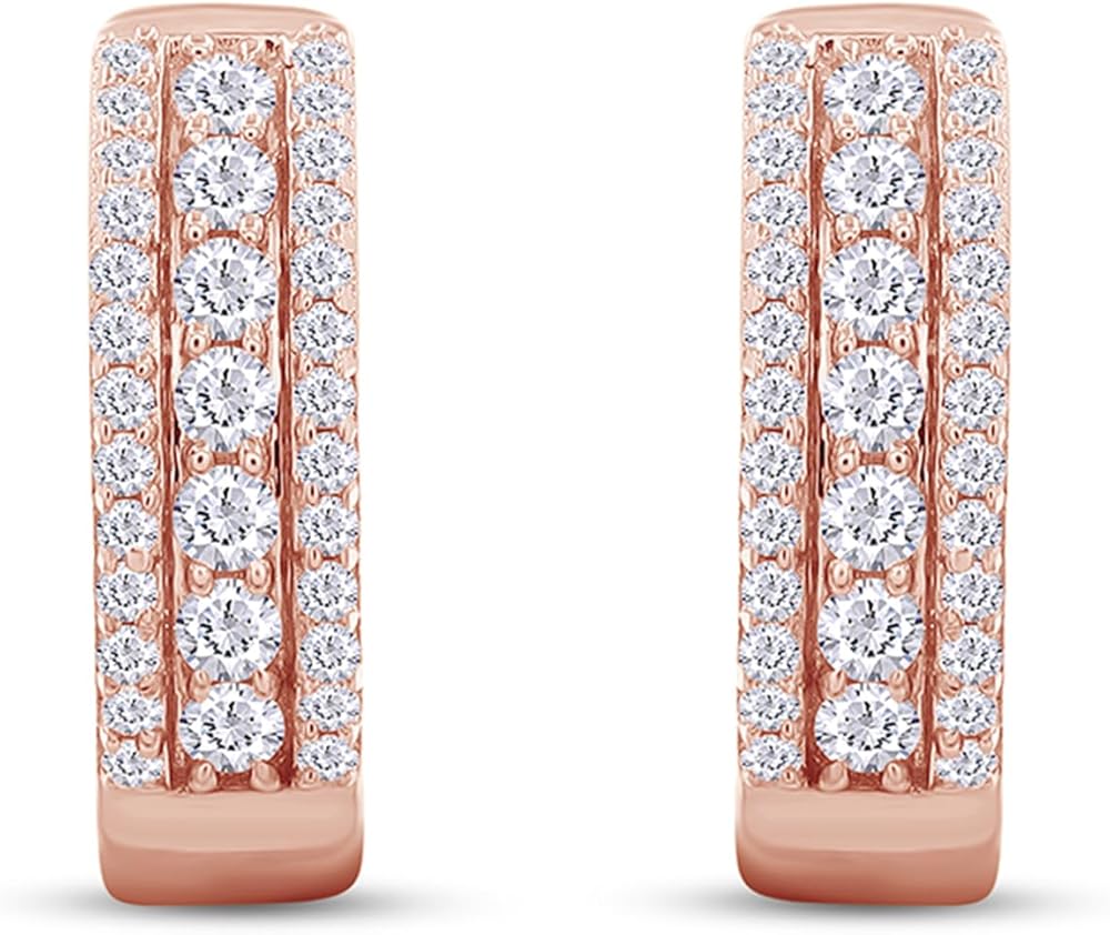 Add a glistening pop of pretty look when you wear this Round Cut Cubic Zirconia Triple Row Huggies Hoop Earrings In 925 Sterling Silver Simply Beautiful!! It Is a special gift to Your loved one or a beautiful piece that complements your personal style with this jewelry..