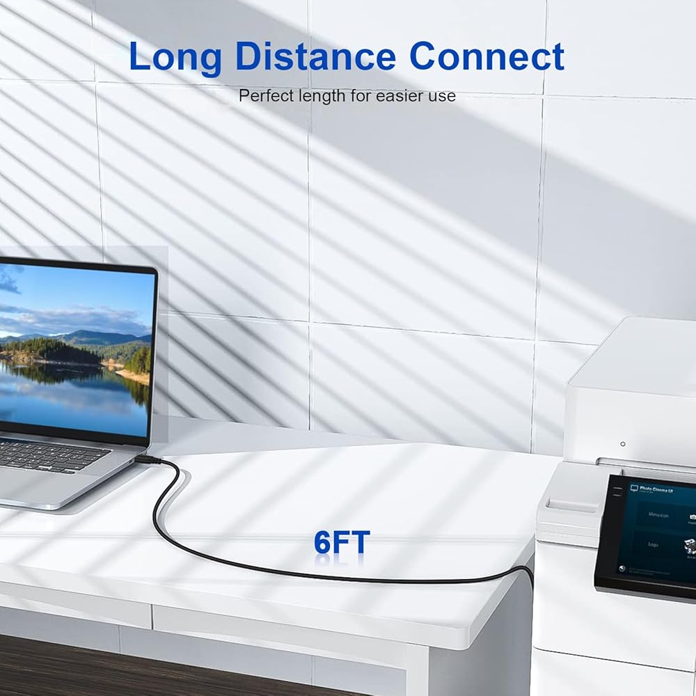 1.The 6-foot printer USB cable is the ideal length, allowing you to print documents or photos at your home or place of business.