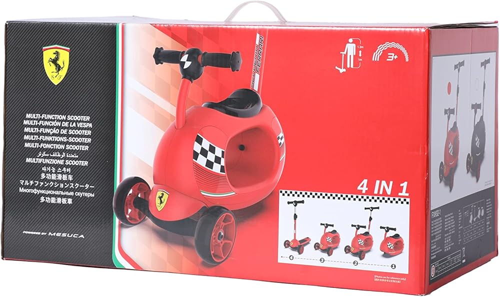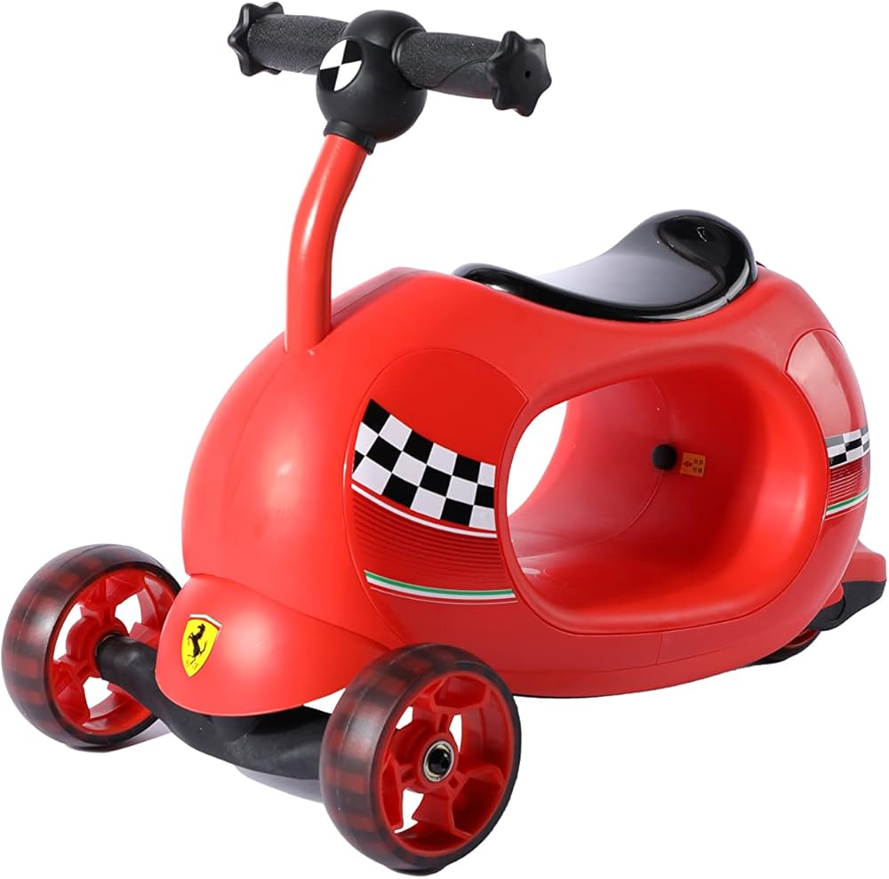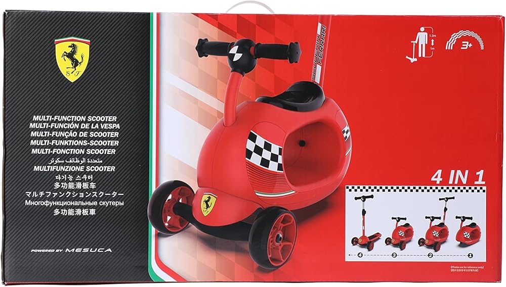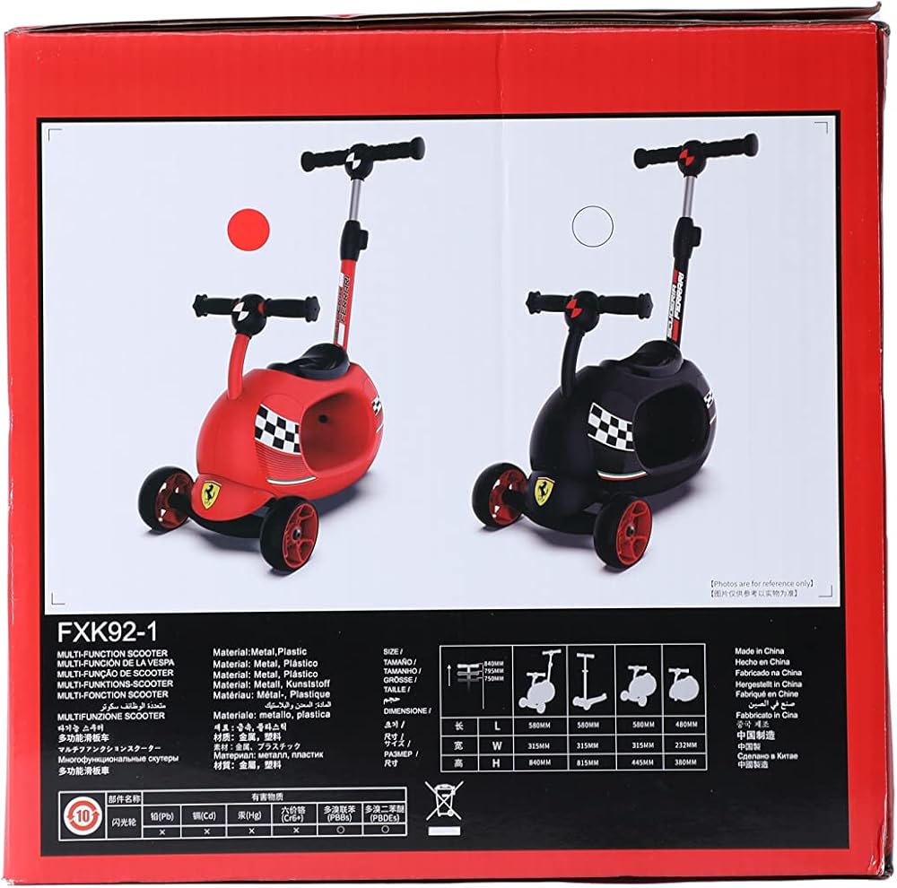 • PUSH-SIT-ROCK & SCOOT 4 IN 1 - الوضع 1 - دليل الوالدين للتحكم في دراجة ثلاثية العجلات في المدينة - تصميم الوضع B من القدم إلى الأرض للانزلاق مع تعزيز قوة الساق. الوضع C- سكوتر بثلاث عجلات. الوضع D - الحصان الهزاز - تصميم فيراري على شكل دائري يخلق تأثيرًا هزازًا.