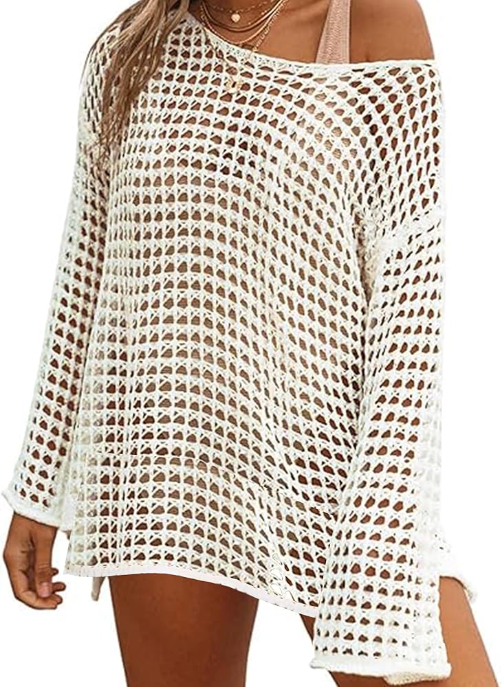 التصميم: ملابس بحر بأكمام طويلة مع تصميم مجوف ومقاس فضفاض لمظهر فضفاض وطبيعي