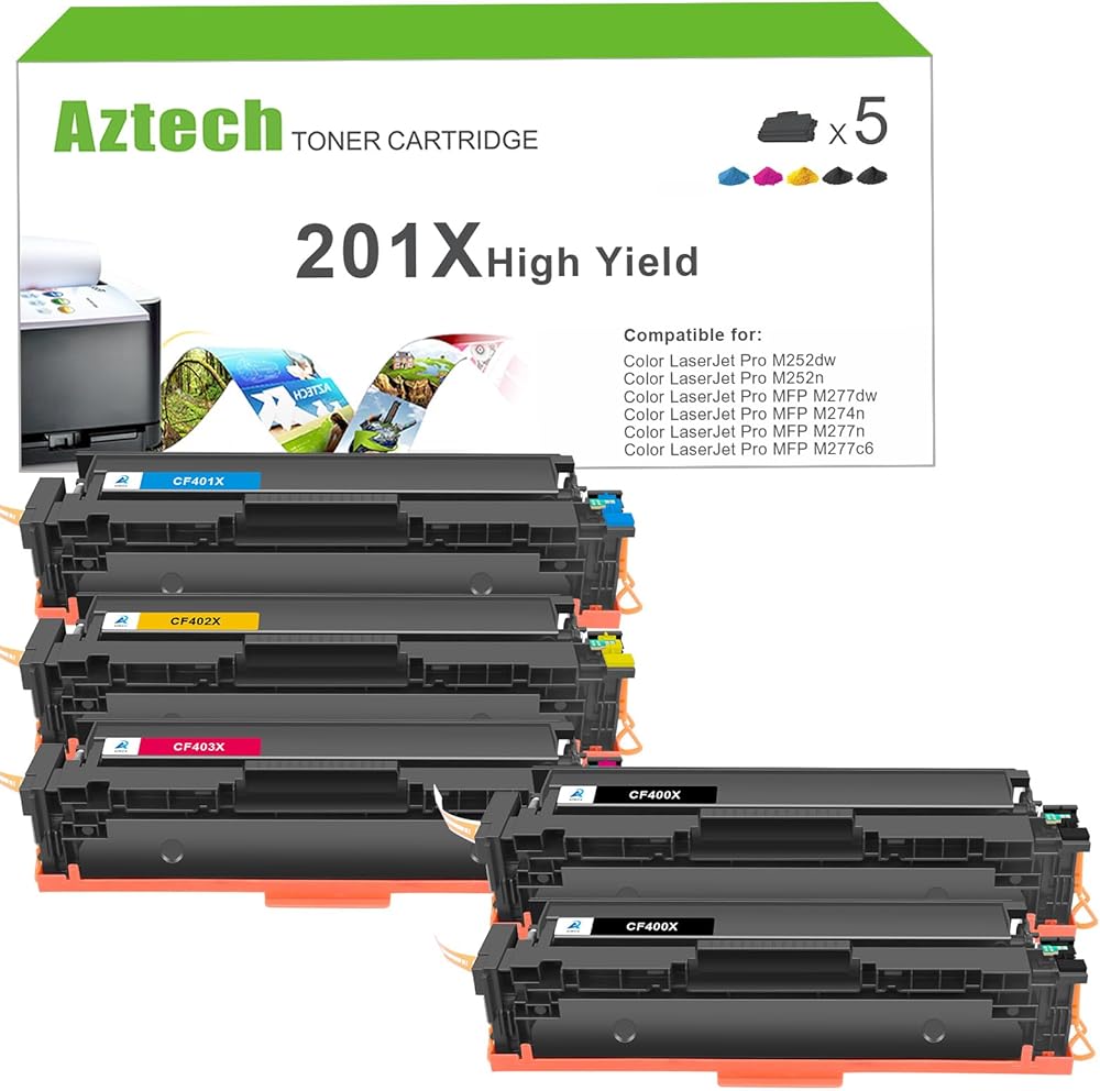 خرطوشة حبر بديلة متوافقة مع Aztech M277dw M252dw لحبر الطابعة HP 201A 201X CF400X CF400A Color Pro MFP M277dw M277c6 M277 M252 حبر الطابعة CF401X CF402X CF403X (أسود سماوي أصفر أرجواني، 5 عبوات)