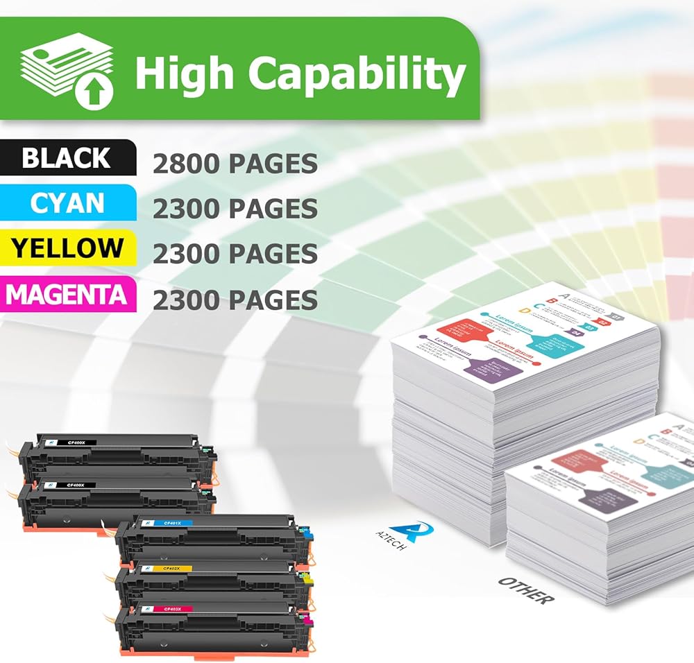 - تشتمل على: 5 عبوات بديلة متوافقة عالية الإنتاج لـ HP 201A 201X لـ HP201A لخرطوشة الحبر HP201X CF400X CF401X CF402X CF403X CF400A CF401A CF402A CF403A أسود سماوي أصفر أرجواني