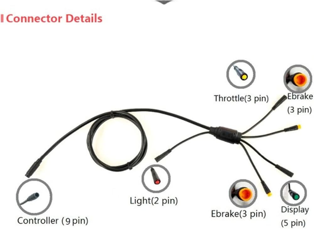 1. 1 to 5 Wires: Connect to the controller (9 pin), lamp (2 pin), brake (3 pin), display (5 pin), Throttle(3 pin), including the light wire.