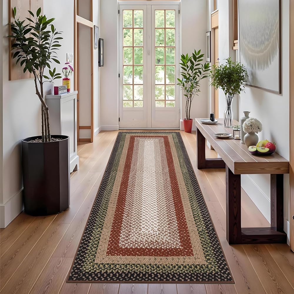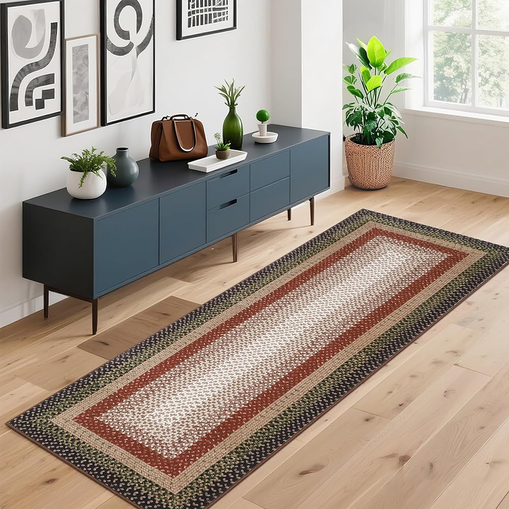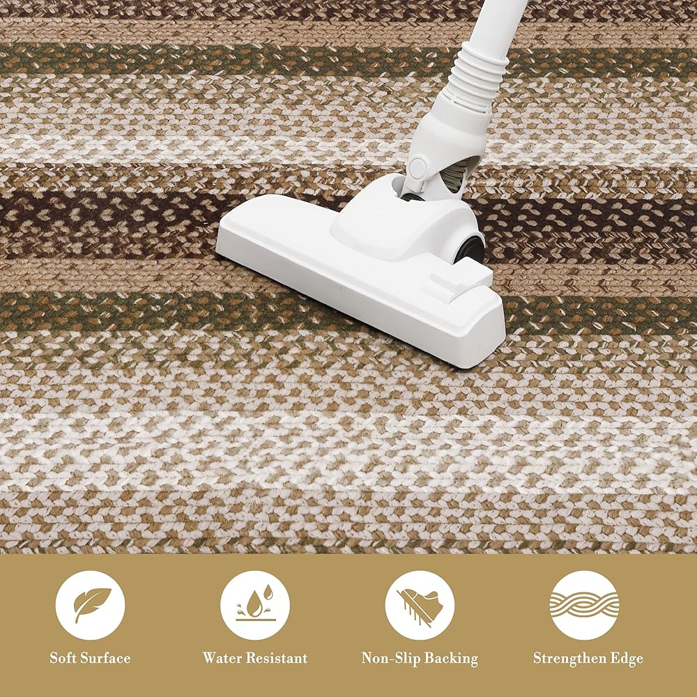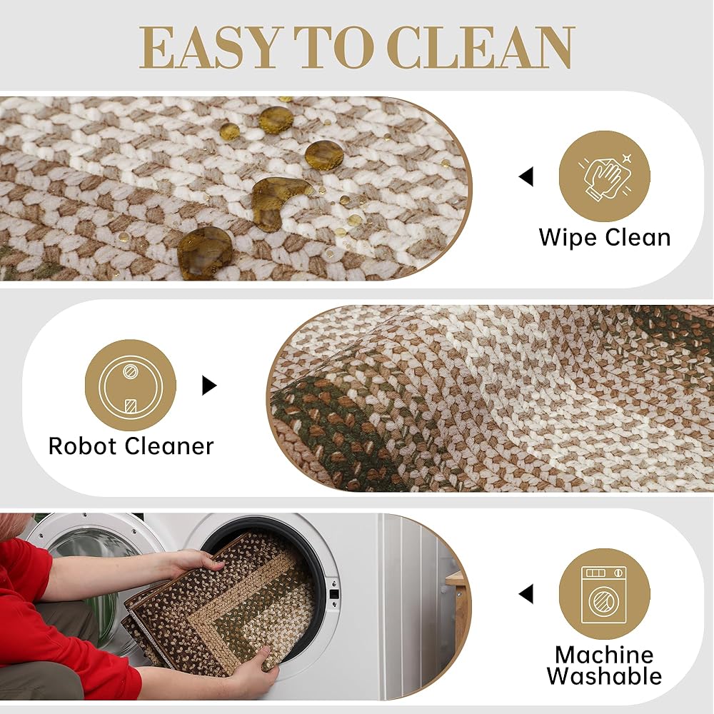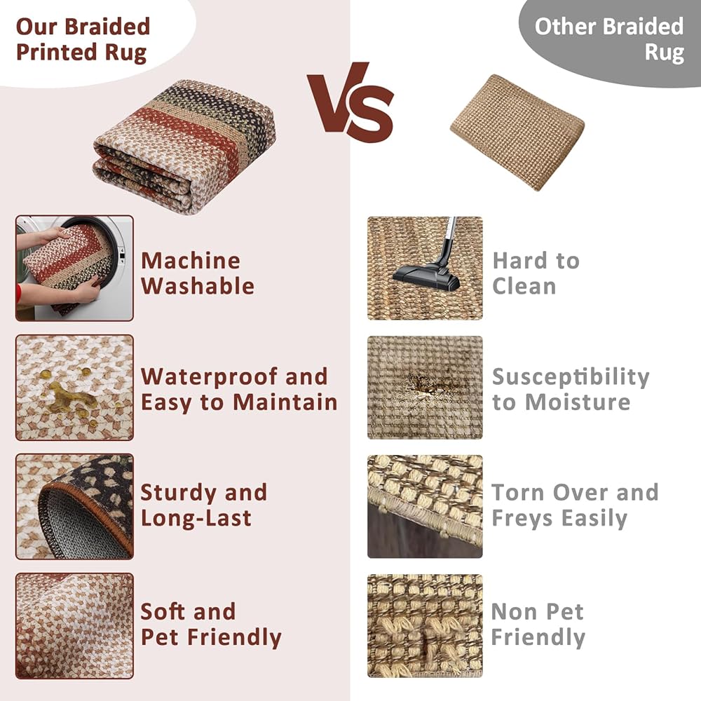 غير قابلة للانزلاق - سجاد منطقة الطباعة المضفرة الخاصة بنا مصنوعة من دعامة من المطاط اللدن حراريًا والتي تحافظ على السجاد بشكل فعال في وضع ثابت وتمنع الحركة الخطيرة والانزلاق. وهذا يجعلها أكثر أمانًا لأطفالك أو حيواناتك الأليفة للعب أثناء الاستخدام اليومي. مثالية للمناطق ذات حركة المرور العالية في منزلك.