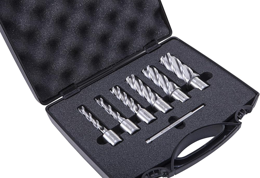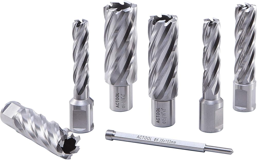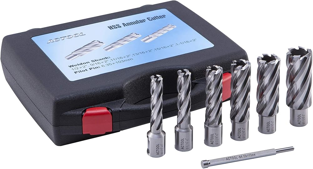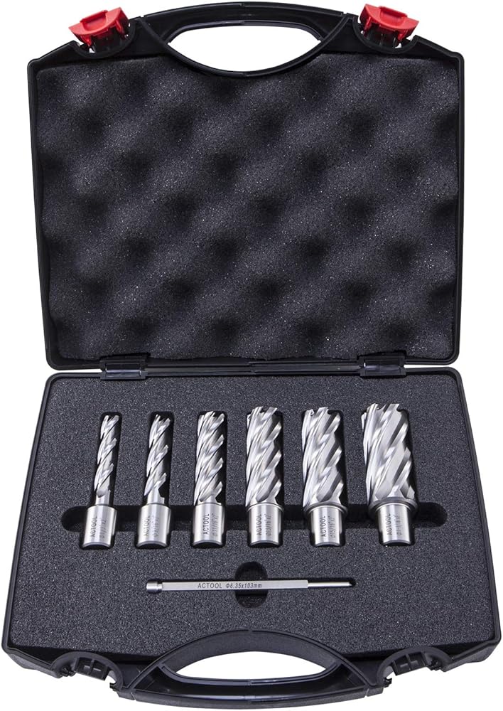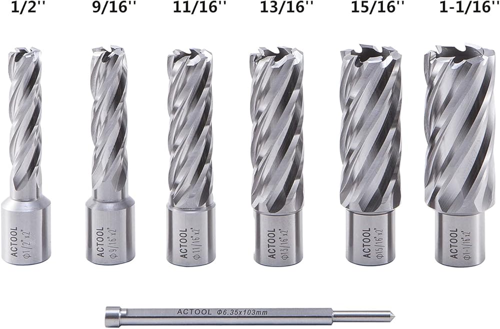 ACTOOL 6 قطعة 1/2 بوصة إلى 1-1/16 بوصة مجموعة قاطعة حلقية HSS عمق قطع 2 بوصة مع ساق ويلدون 3/4 بوصة