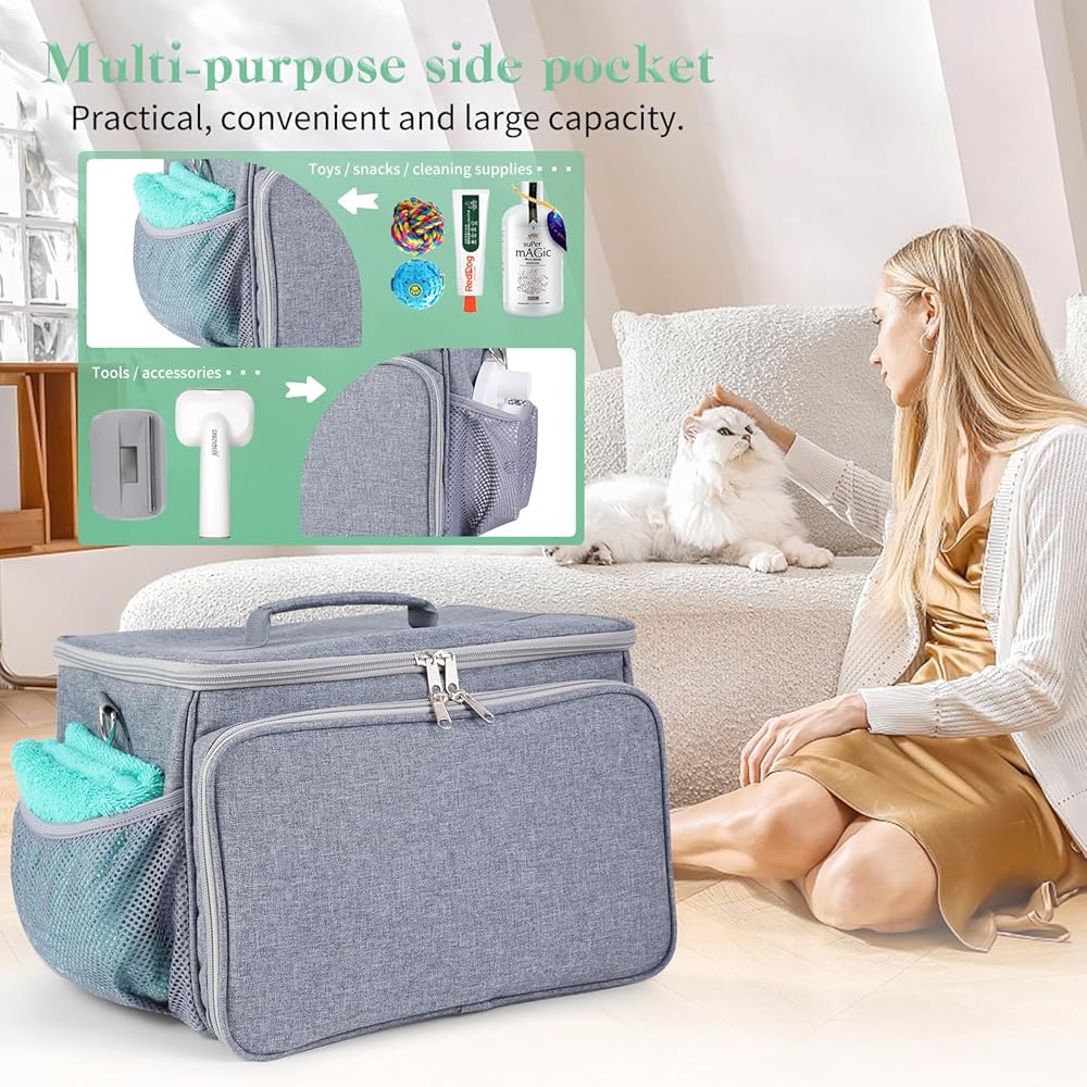 قابلة للحمل: عند الخروج، يمكنك استخدام هذه الحقيبة مع حزام الكتف لحماية وحمل مكنسة العناية بكلبك من أجل التساقط، خذ المجموعة بسهولة وحرر يديك؛ عندما تكون في المنزل، يمكنك استخدامها لتخزين مكنسة العناية بحيوانك الأليف للكلاب، مما يجعل منزلك منظمًا ويمكن استخدامه مقاومًا للغبار في نفس الوقت.