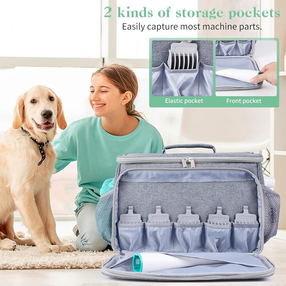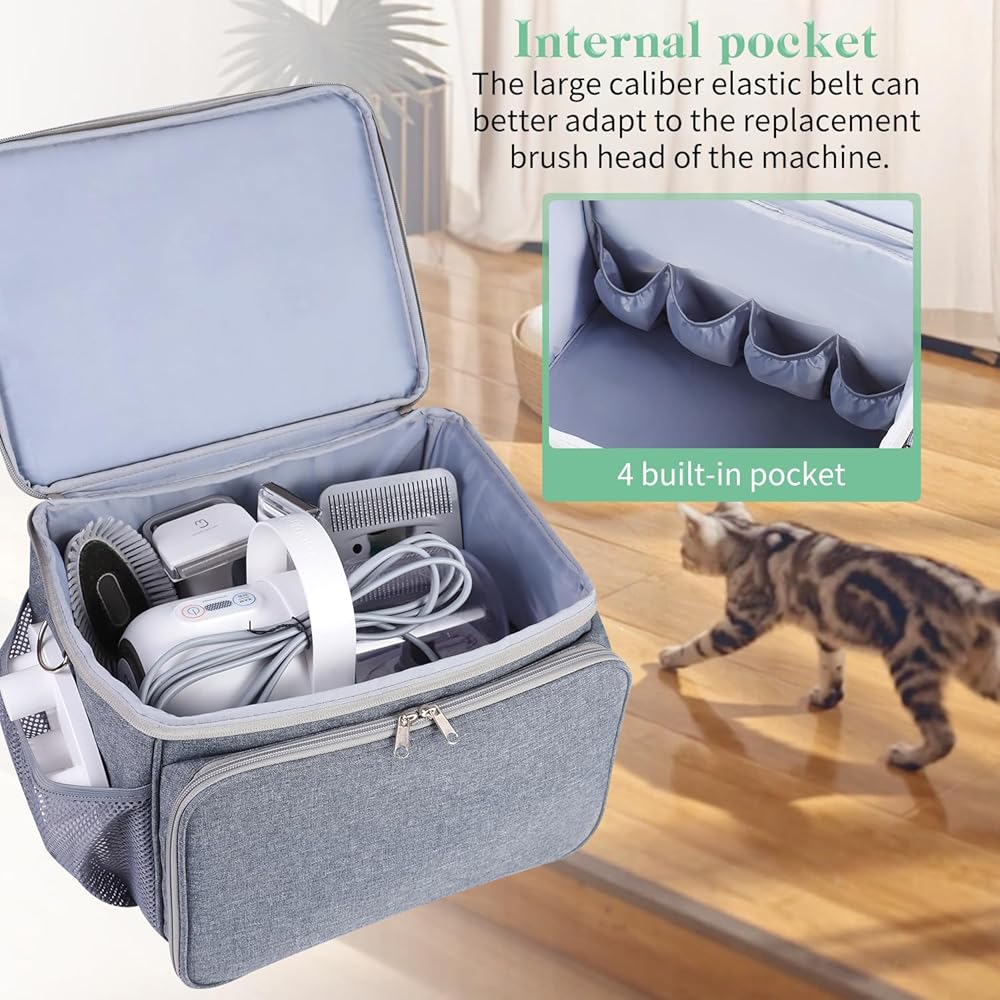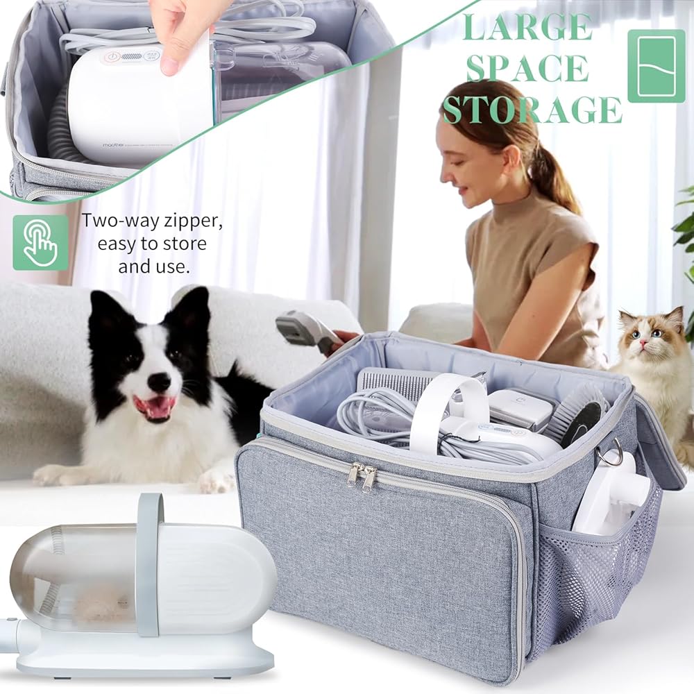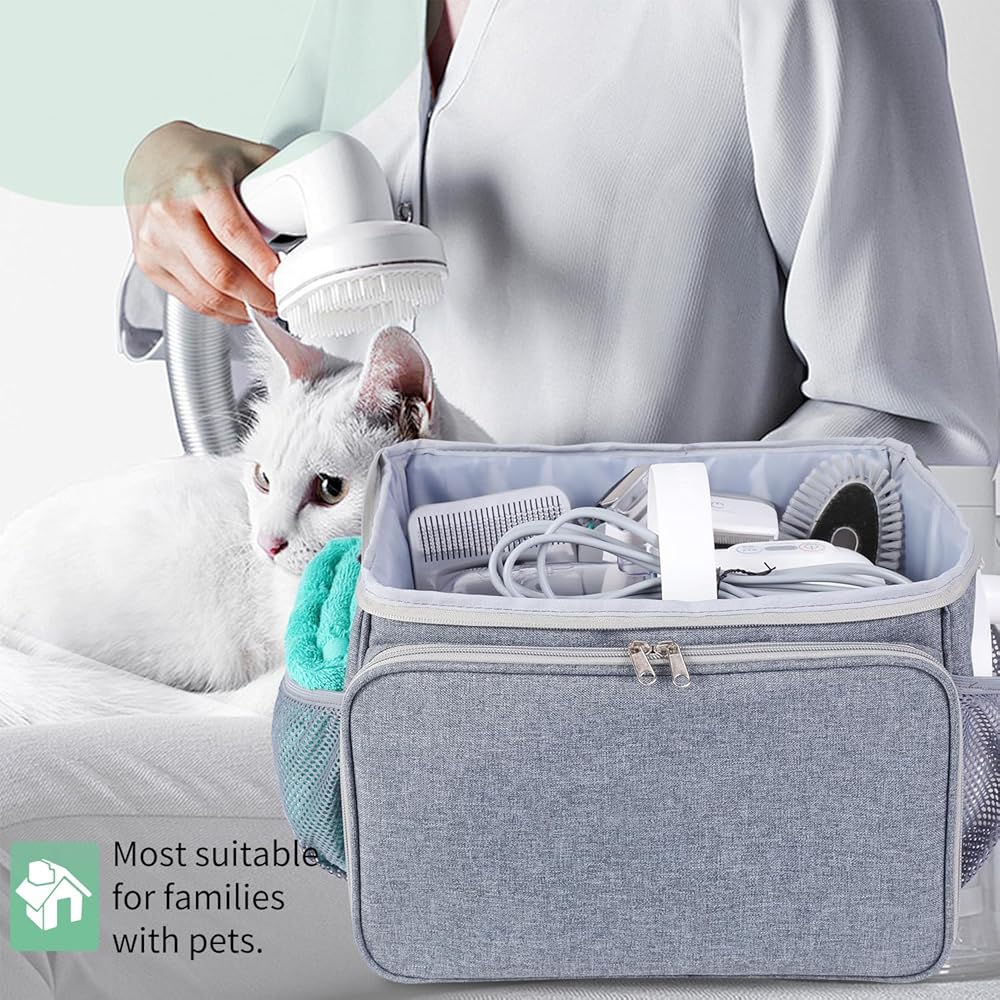 سعة كبيرة: يمكن للجزء الرئيسي لحقيبة تخزين آلة شفط شعر الحيوانات الأليفة ذات الفتحة الكبيرة تخزين آلة شفط شعر الحيوانات الأليفة، ولا داعي للقلق بشأن الملحقات الأخرى مثل رؤوس الفرشاة والقضبان التليسكوبية. توجد مساحة تخزين على جانبي الجيب الأمامي والحقيبة.