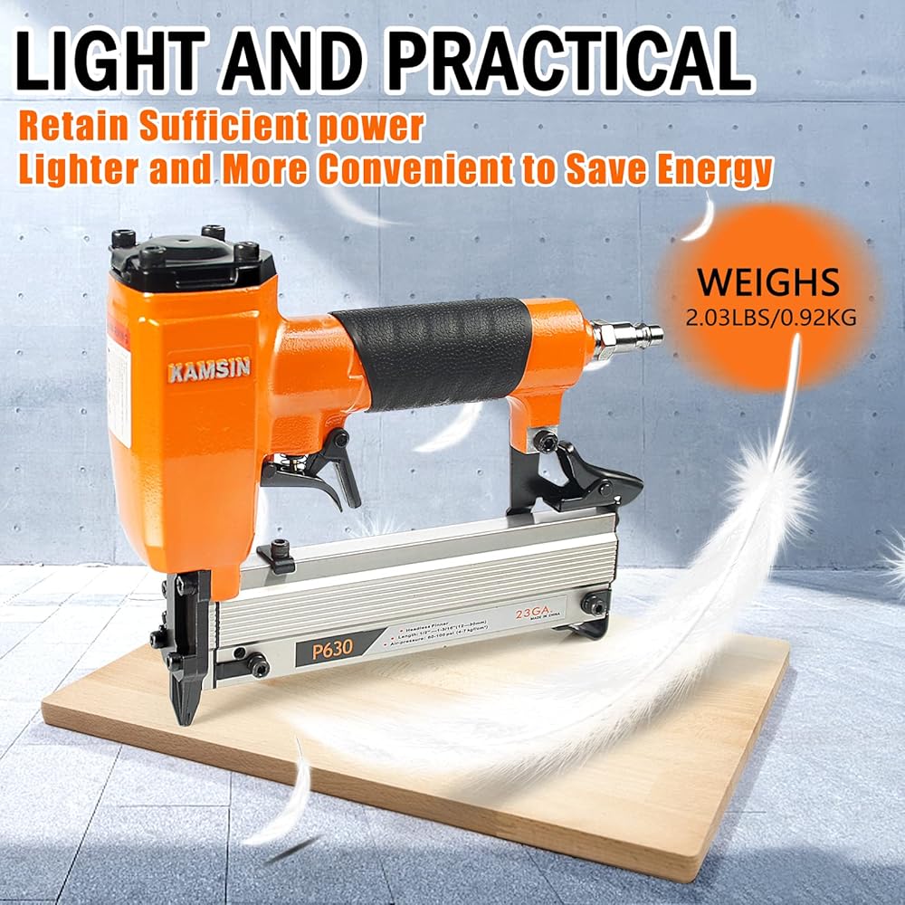 【Accurate Nailing & Fewer Jamming】The nose is designed to narrow and slim, makes the easy and accurate aiming on the working surface. Few jamming occurrences due to the good craftsmanship in firing pin and muzzle, which ensures the whole firing process is smooth and fluent.