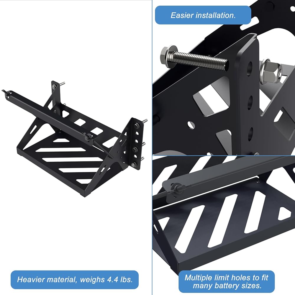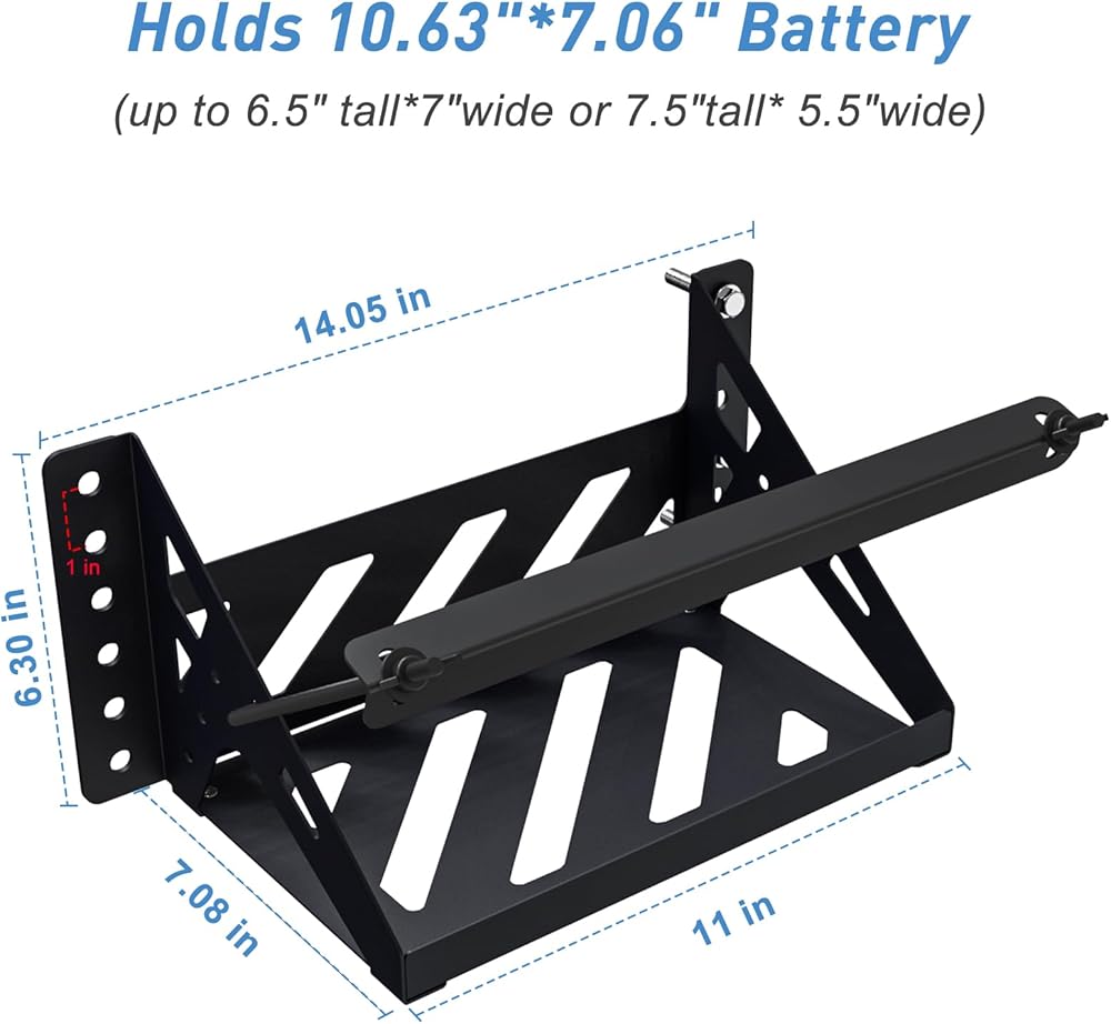 دعامة صندوق تركيب البطارية الفولاذية المعدنية شديدة التحمل - حجم قابل للتعديل - الحد الأقصى للدعم - 10.63 بوصة × 7.06 بوصة × 7.5 بوصة - قوي ومقاوم للصدأ وسهل التركيب