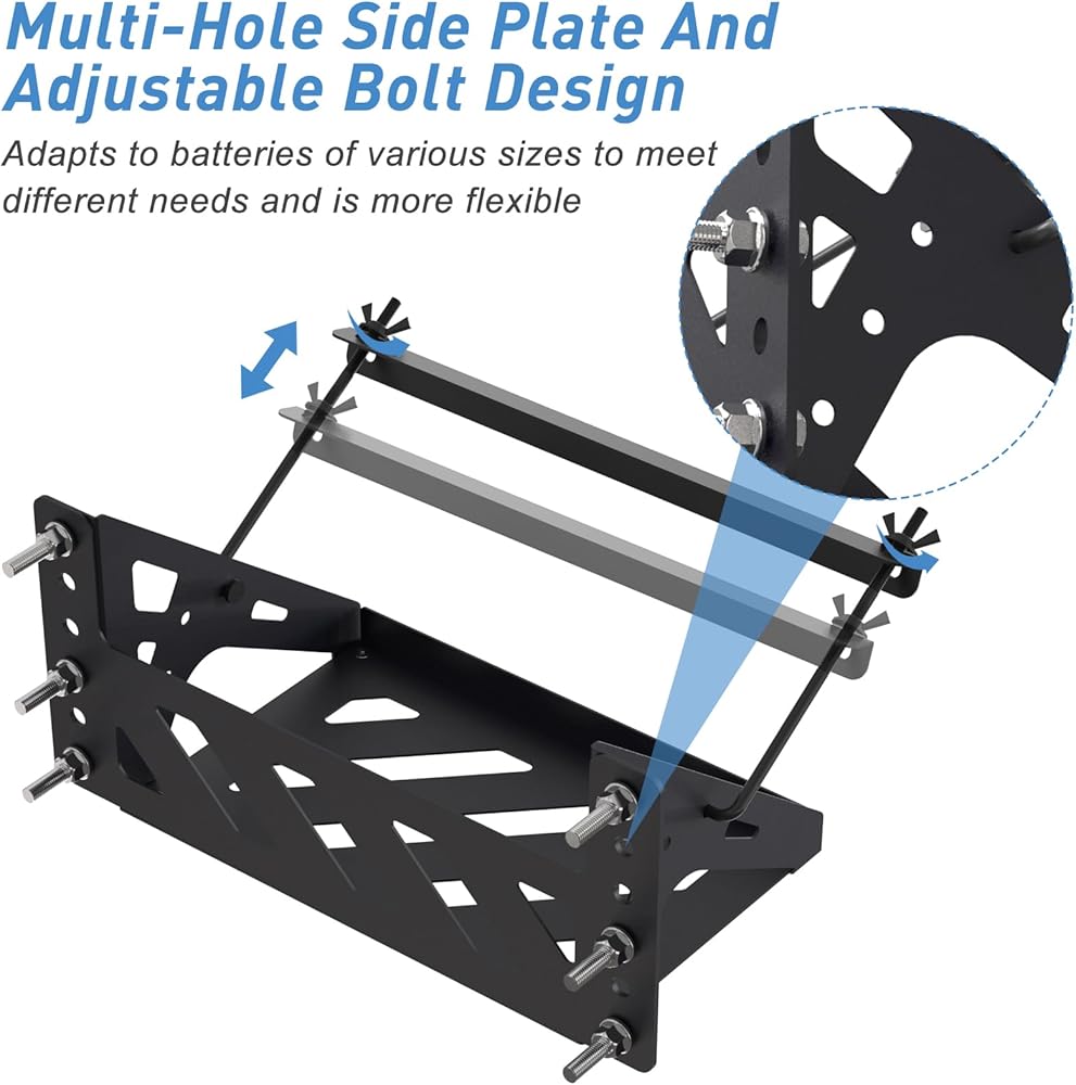 • Adjustable Size: Multi-hole side panels and adjustable bolts are designed to fit a variety of battery sizes to meet different needs and be more flexible.
