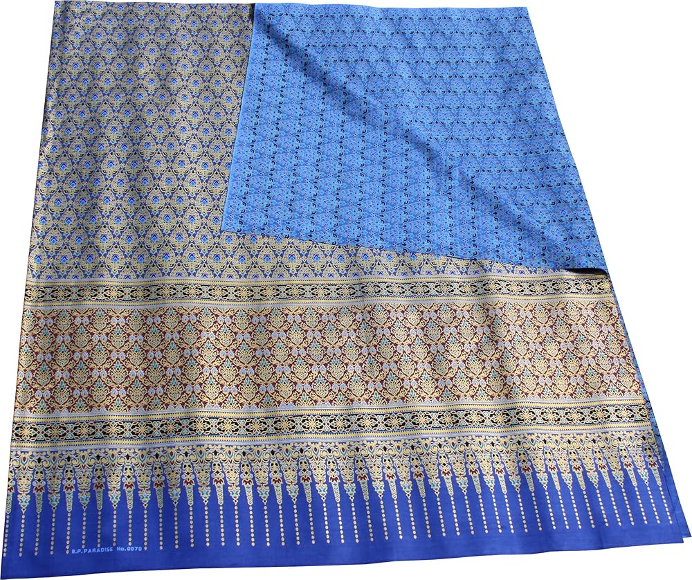 قماش سوخوثاي باتيك بطباعة زهور تايلاندية تقليدية مقاس 70 × 40 بوصة، أزرق