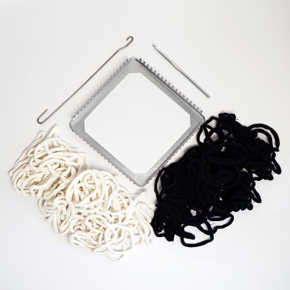 تصميمات هاريسفيل نول ودية للذكرى الخمسين التقليدية، مجموعة نول بوثولدر مقاس 7 بوصات مع حلقات قطنية باللونين الأسود والأبيض تصنع 4 موثرات، وحرف نسجية للأطفال والكبار، مصنوعة في الولايات المتحدة الأمريكية