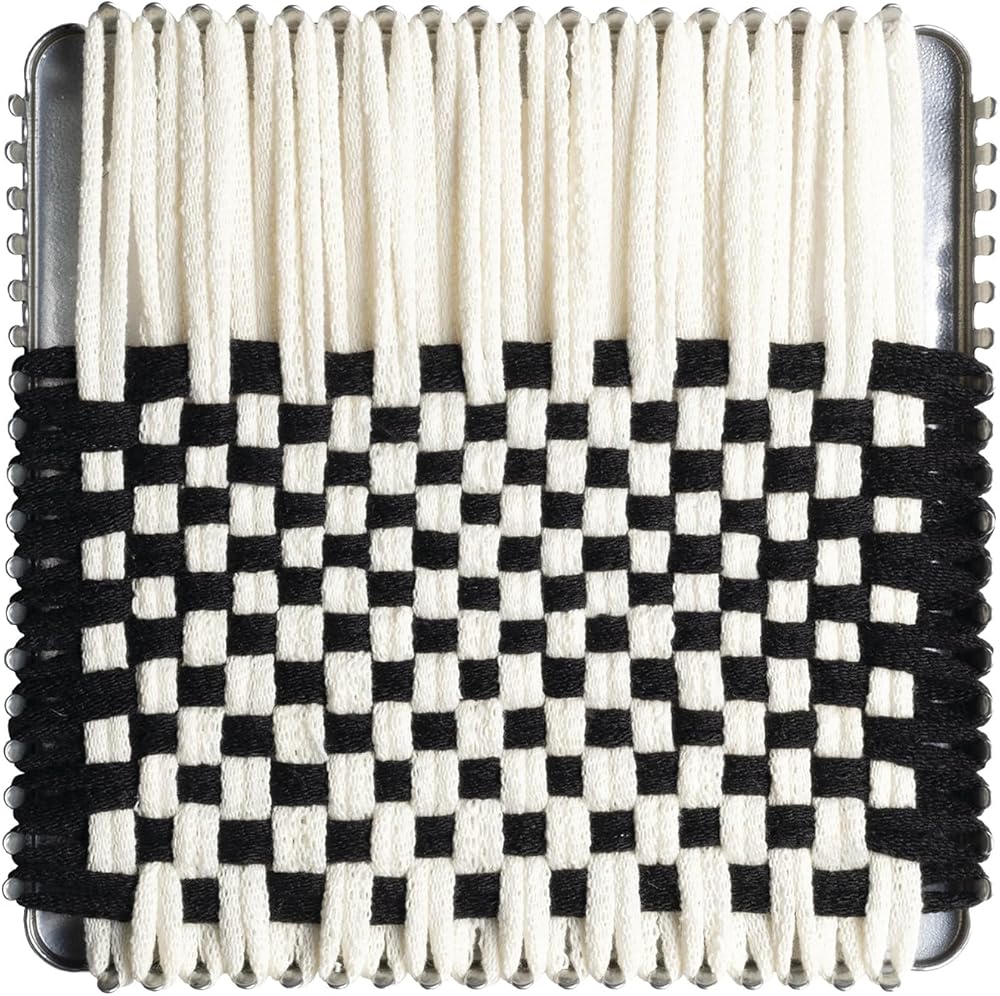 Friendly Loom 7" Potholder Kit Silver Metal Loom and Black and White Cotton Loops, Make 4 Potholders, Made IN THE USA by Harrisville Designs.