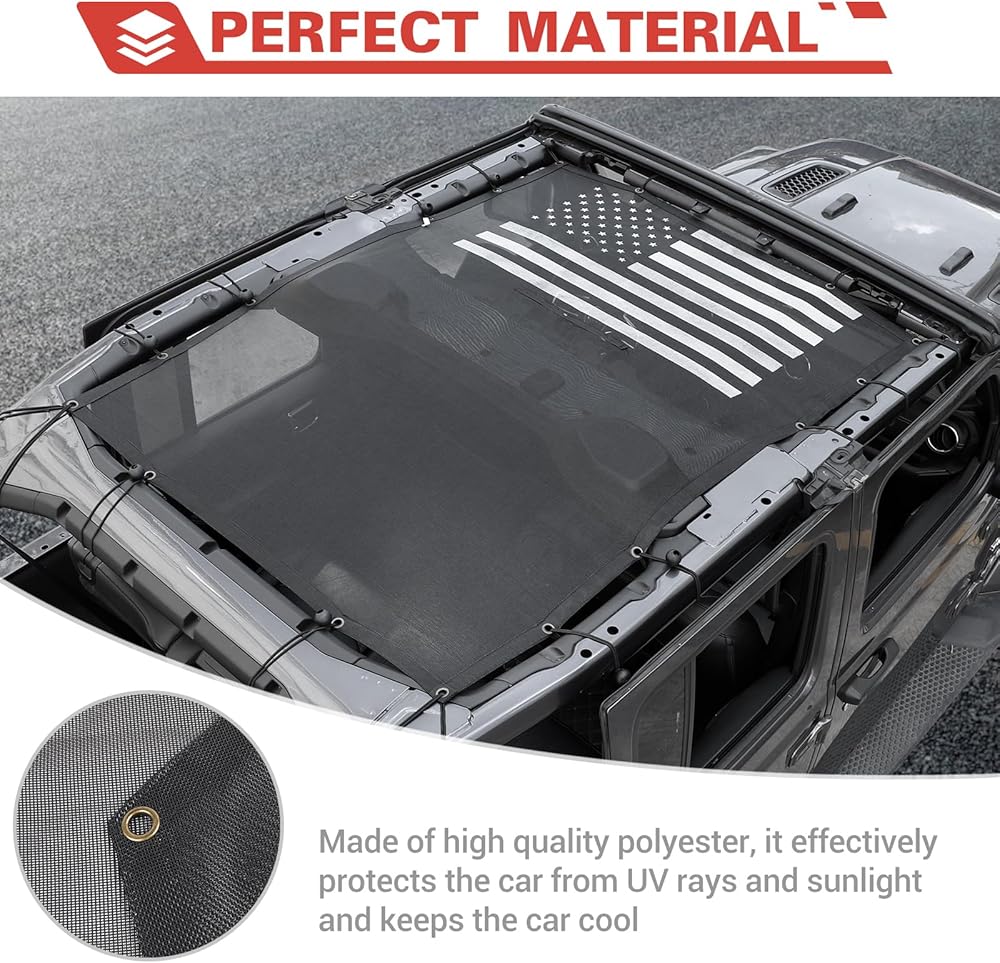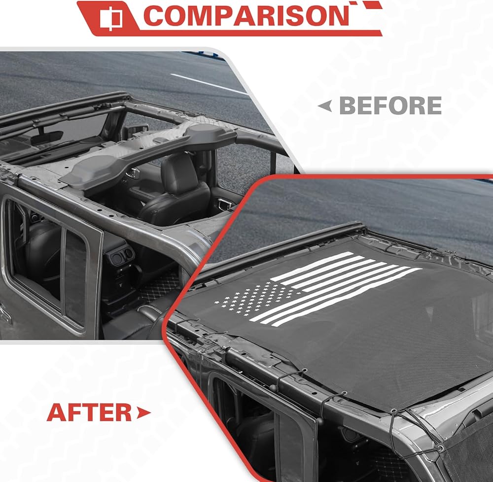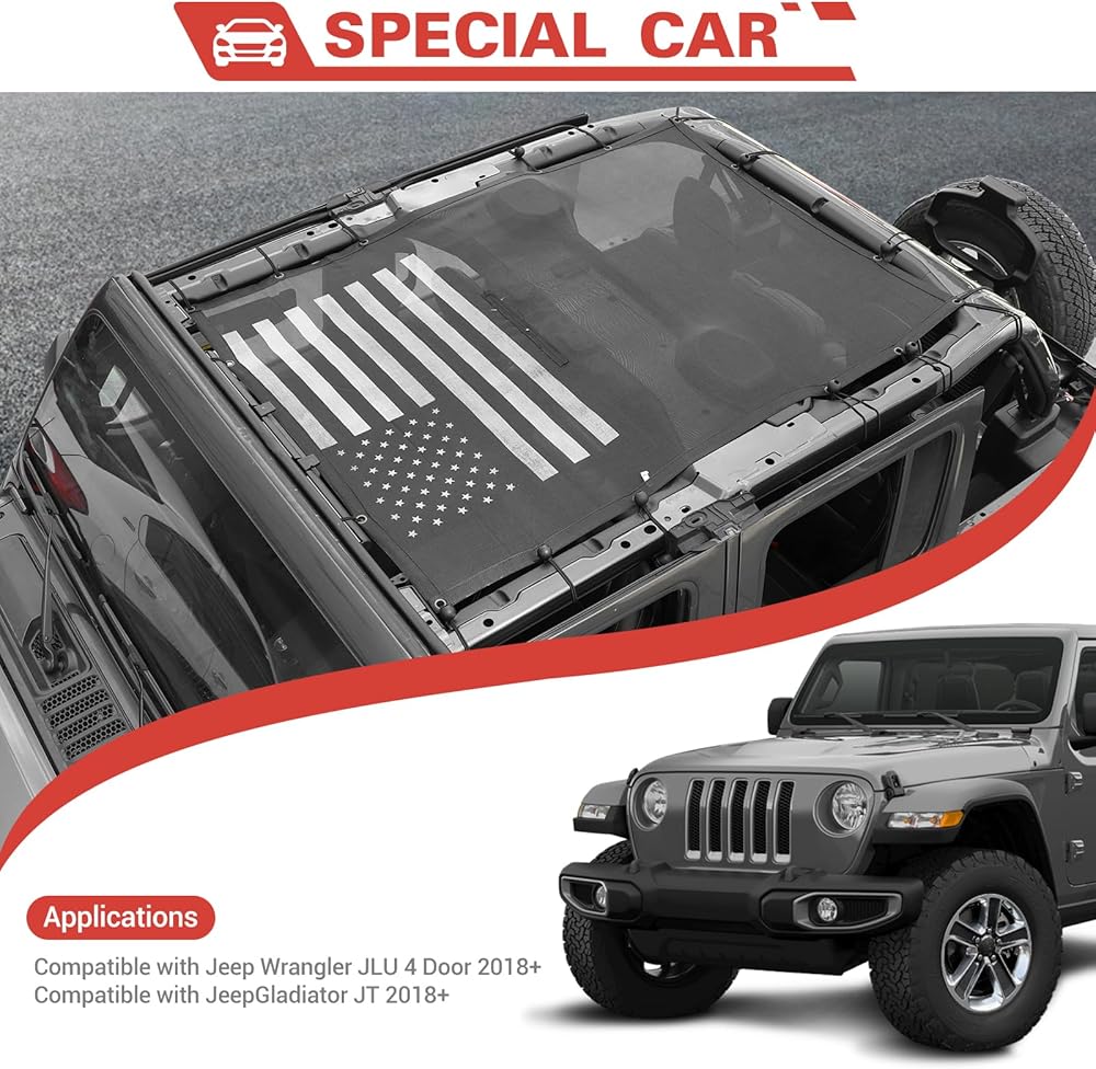 【APPLICABLE MODELS】Sun Shade Mesh Top Cover Compatible with Jeep Wrangler JLU 4 Door & Gladiator JT 2018-2024