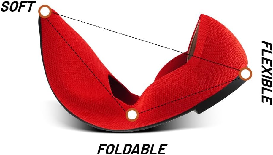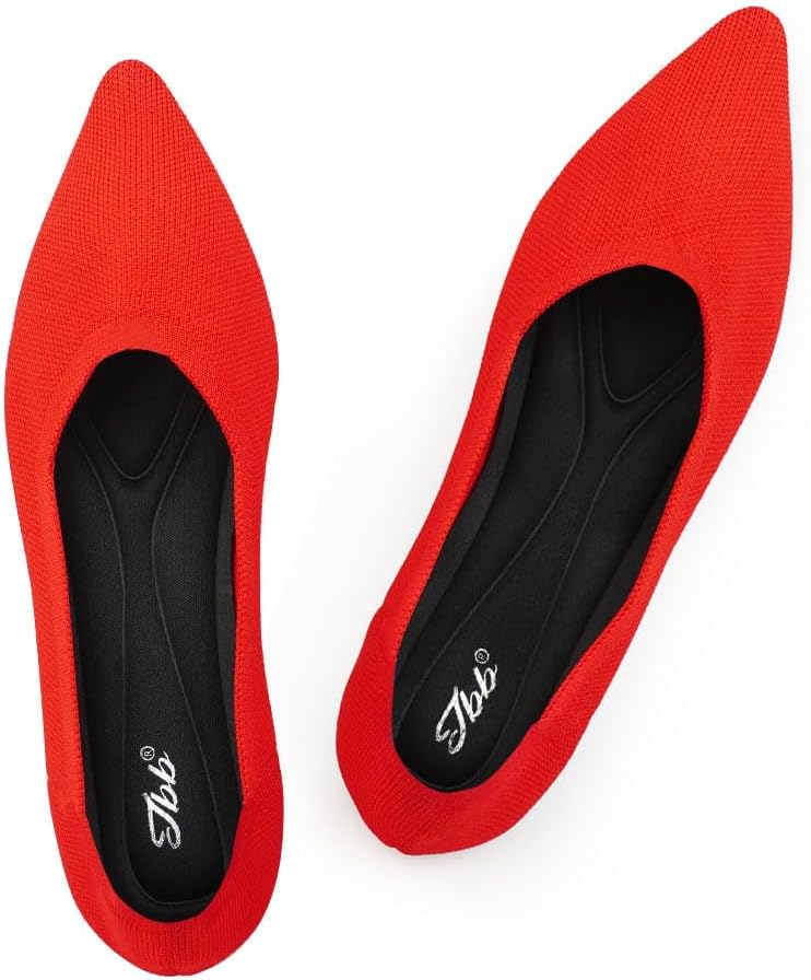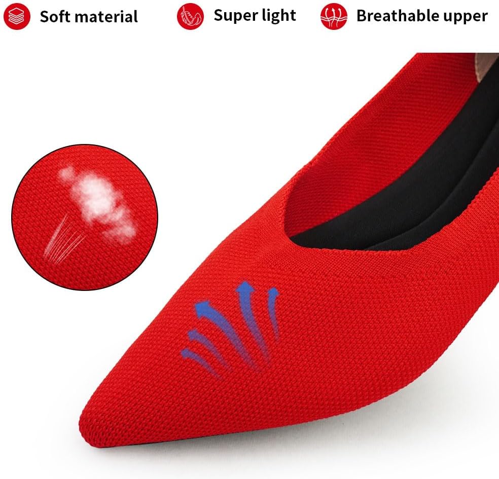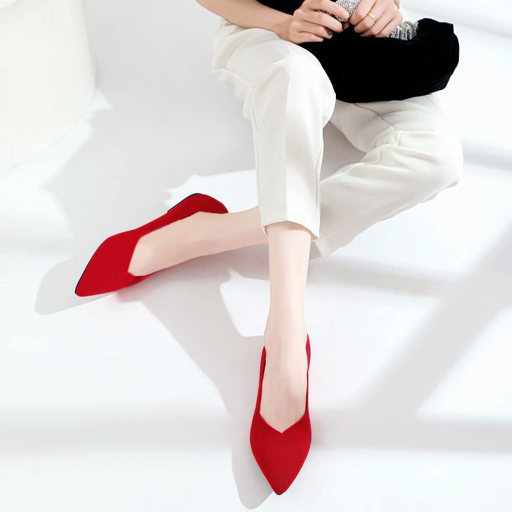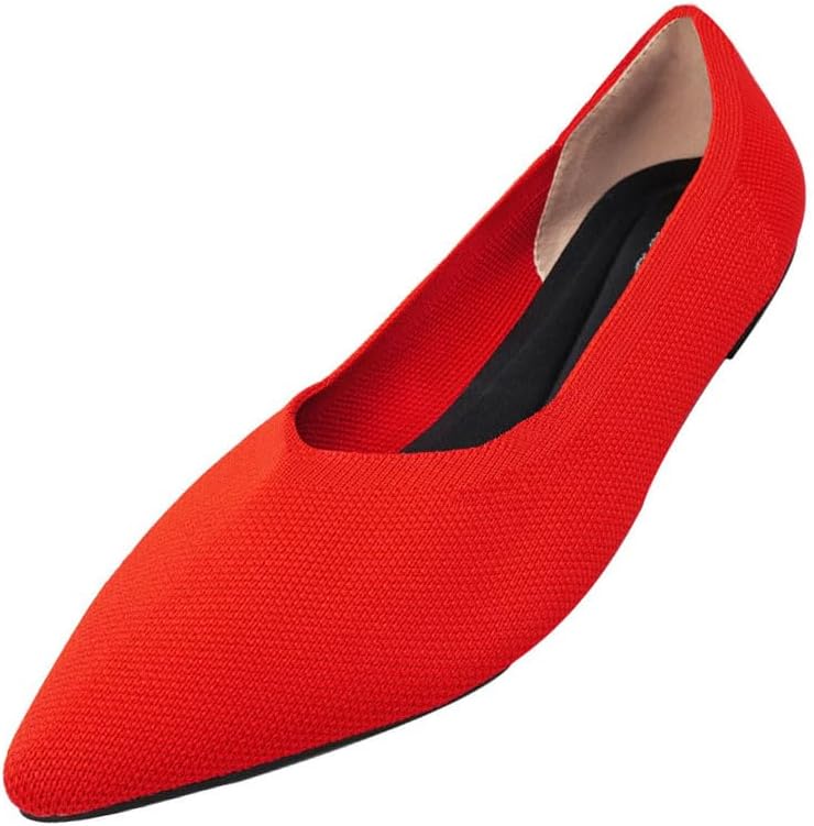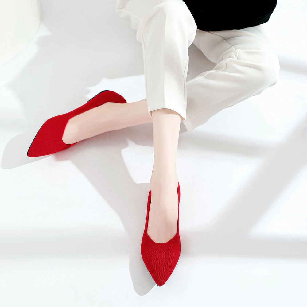 أحذية JBB النسائية المسطحة بمقدمة مدببة أحذية الباليه المحبوكة بكعب منخفض سهلة الارتداء للمشي فستان كاجوال بدون كعب أحمر 9.5