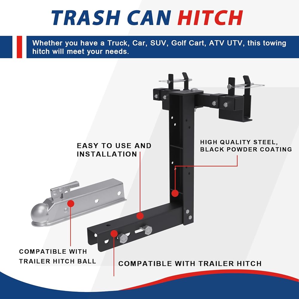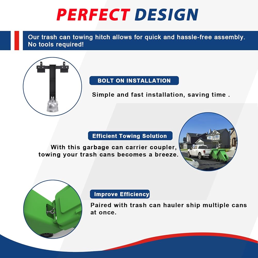 【عالمية وعملية】قم بترقية تجربة التخلص من القمامة الخاصة بك مع وصلة نقل سلة المهملات ذات العجلات المريحة المثبتة على الكرة من ELITEWILL. يمكن تركيبها بسهولة على سيارتك، وهي تستوعب مختلف المركبات. سواء كان لديك شاحنة، أو سيارة، أو سيارات الدفع الرباعي، أو عربة جولف، أو ATV UTV، فإن وصلة السحب هذه ستلبي احتياجاتك.