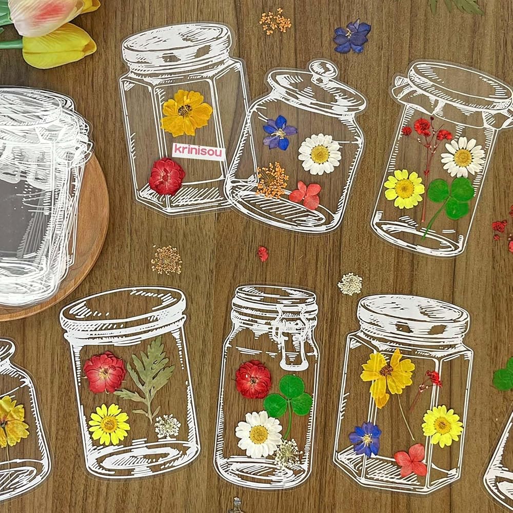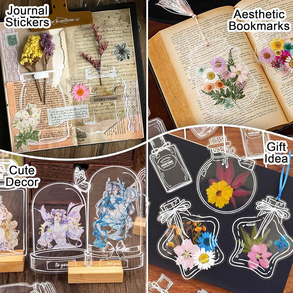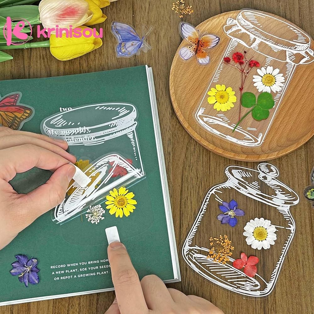مجموعة الإشارات المرجعية للزهور المجففة، ملصقات عشبية العالم في زجاجة، إشارة مرجعية شفافة DIY لصناعة الزهور المضغوطة، مجموعة صنع الإشارات المرجعية الشفافة من ميسون 20 قطعة