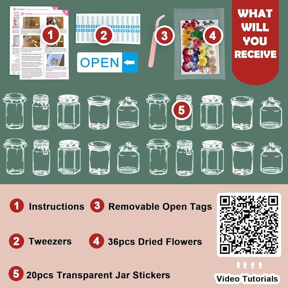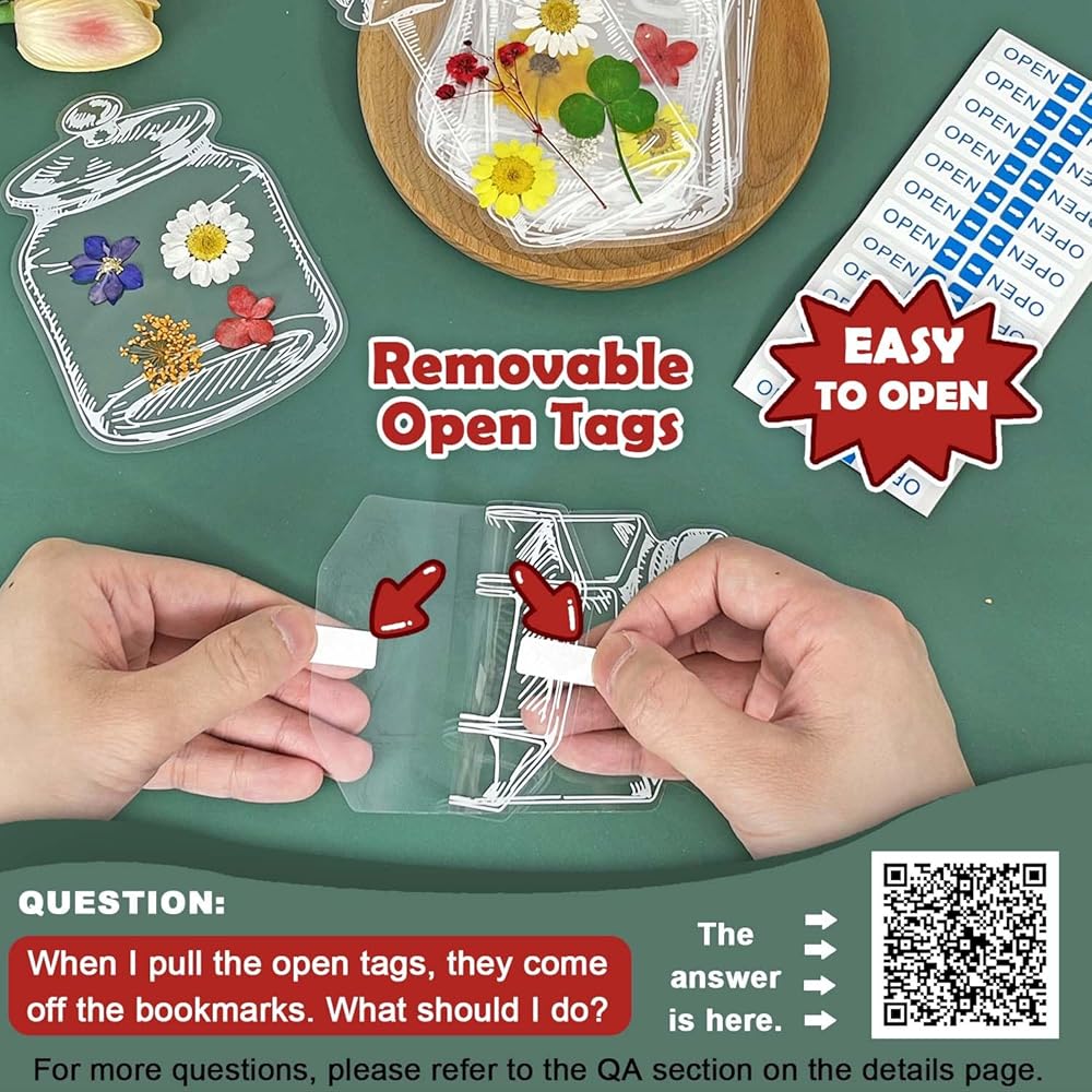 سهلة الصنع مع التعليمات: يأتي عالم Krinisou في ملصقات الزجاجة مع دليل تعليمات مفصل خطوة بخطوة والفيديو المصاحب، مما يجعل من السهل على المبتدئين وعشاق الأعمال اليدوية إنشاء إشارات مرجعية جميلة. على عكس الملصقات العشبية الأخرى، تأتي العناصر بملصقات مفتوحة. وهذا يسمح بسهولة فتح وإدخال الزهور المجففة، مما يضمن تجربة حرفية سلسة.