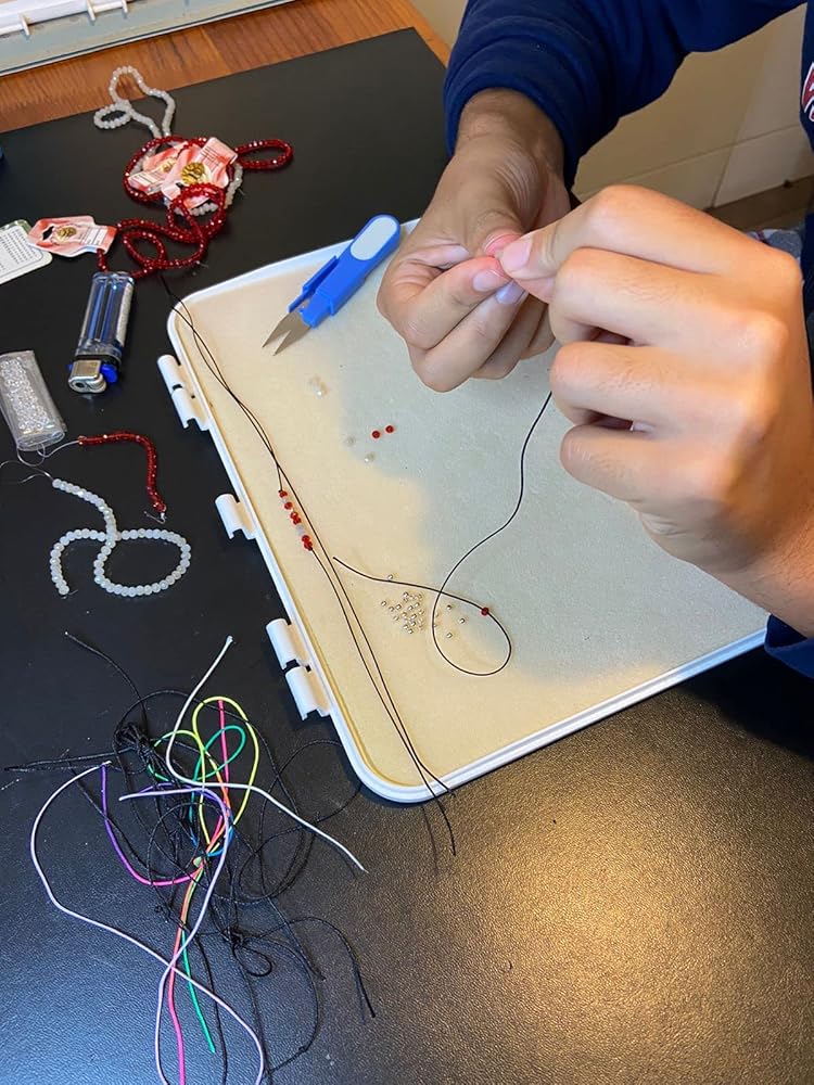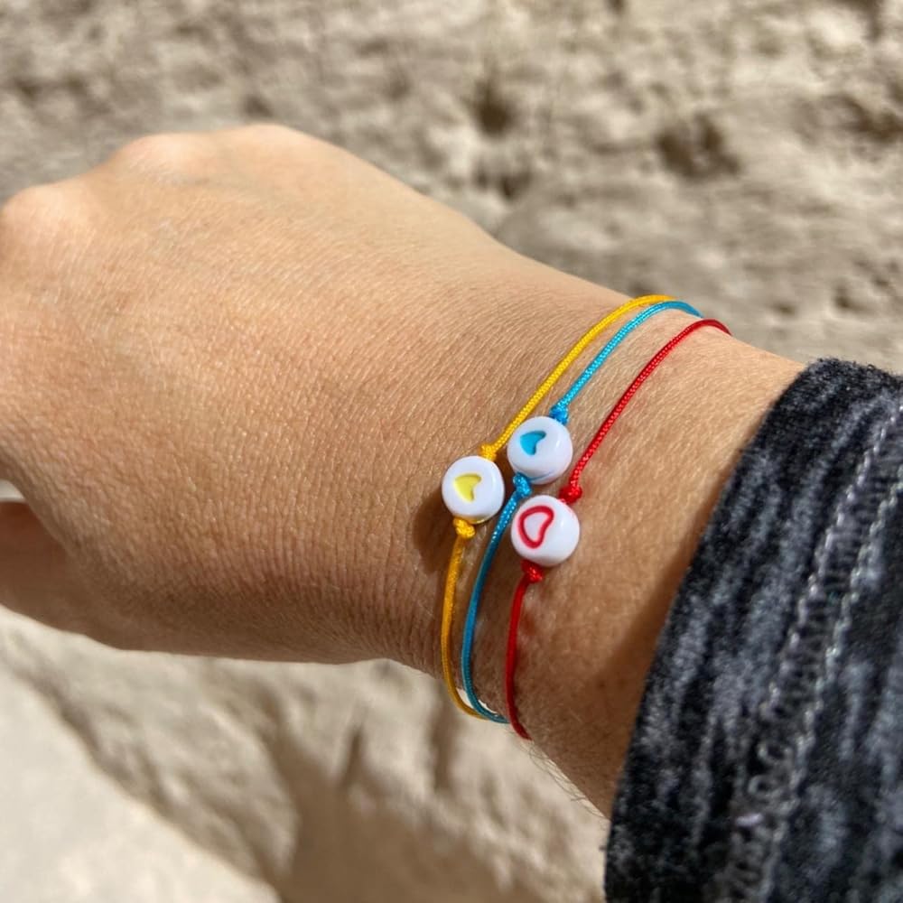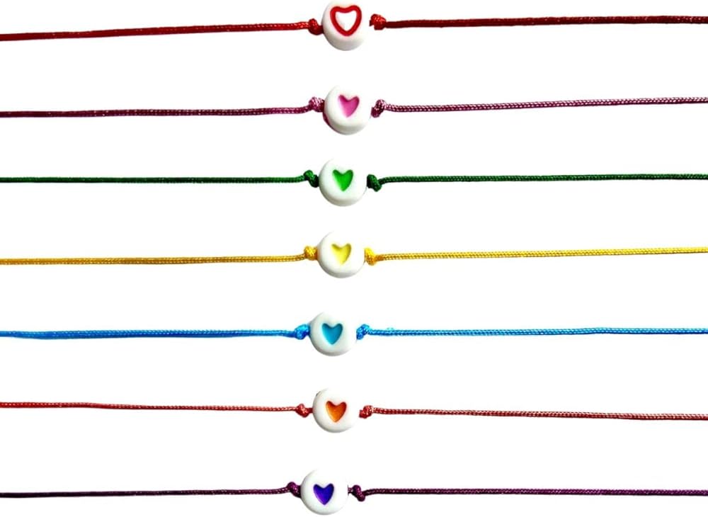 Colors of bracelets: Red, pink, purple, orange, turquoise, yellow, and green.