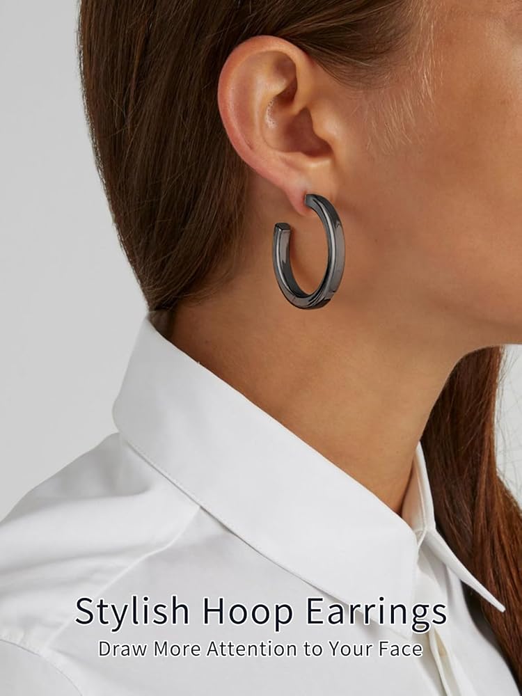 • ❤أقراط طوقية للنساء - هذه الأقراط الحلقية تصنع الأقراط الحلقية بعمود من الفولاذ المقاوم للصدأ. قطر 30 مللي متر/1.18 بوصة. إنها مريحة للغاية عند ارتدائها/خلعها، ويمكن أن تكون أقراطك طوال اليوم.