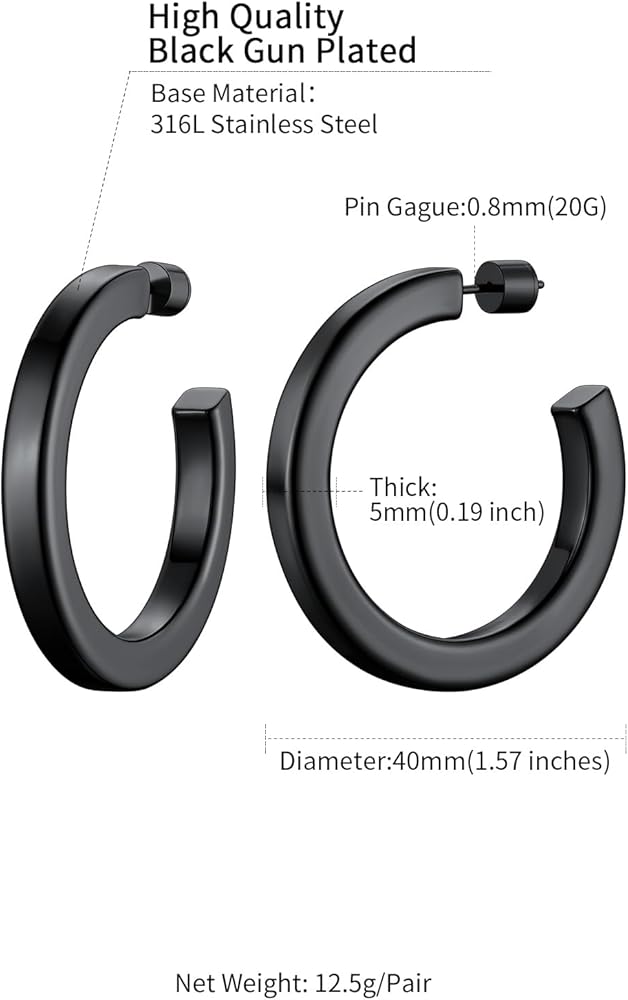 • مادة لا تسبب الحساسية - نحن نصنع الأقراط من الفولاذ المقاوم للصدأ 316L الجراحي/الذهب عيار 18 قيراط/مطلي بمسدس أسود مما يجعل الطوق بأكمله لا يسبب الحساسية، وخالي من النيكل والرصاص.