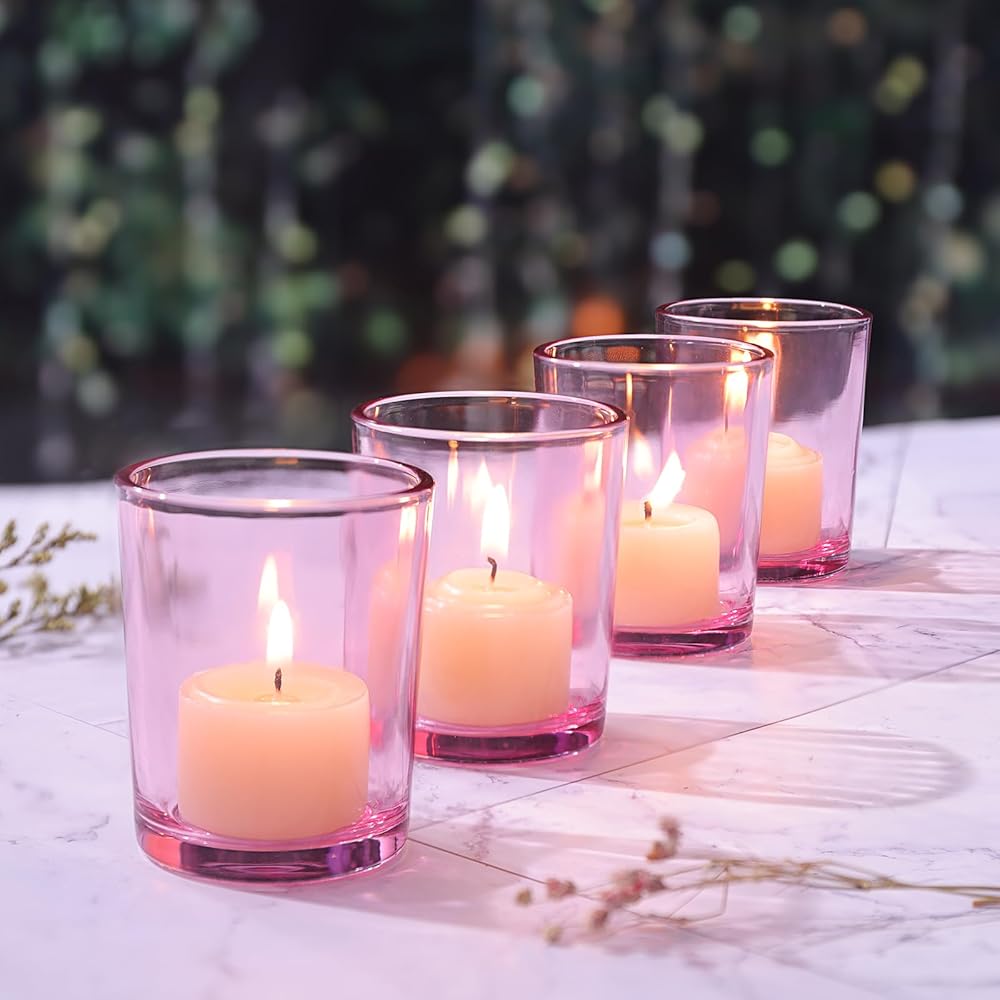 خيارات متعددة الاستخدامات يمكنك صنعها بنفسك: بحجم 2.16 بوصة طول × 2.16 بوصة عرض × 2.55 بوصة ارتفاع، يمكن لهذه الحوامل الزجاجية المطلية بالرش استيعاب الشموع النذرية أو الشموع الصغيرة، مما يسمح للعملاء بتخصيص إبداعات الشموع الخاصة بهم.