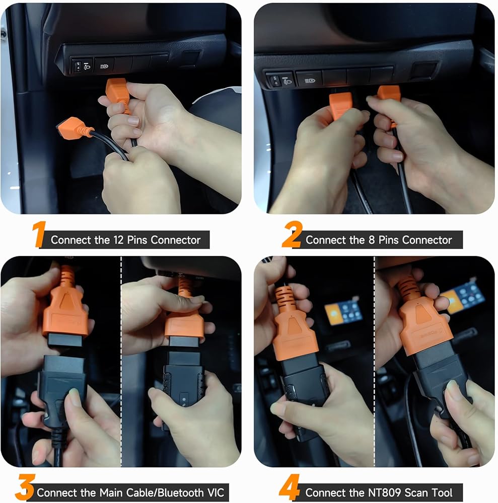 سهل الاستخدام: التوصيل والتشغيل، فقط عليك توصيل FCA 12+8 مباشرة بالموصل 12pin و8pin (موصلان متصلان بـ SGW) الموجود في السيارة. ثم الجانب الآخر لمحول OBD / دونجل Bluetooth VCI للماسح التشخيصي.