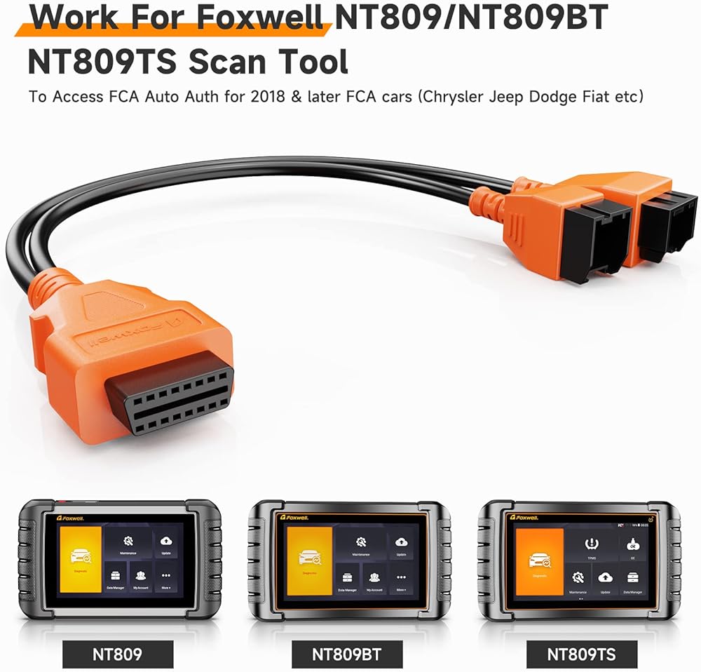 التطبيق: مع كابل FCA Chrysler 12+8 العالمي، يمكن للماسح الضوئي Foxwell أن يدعم المصادقة التلقائية لـ FCA، ويمكنه تشخيص سيارات FCA لعام 2018 وأحدث (كرايسلر/دودج/جيب، إلخ).