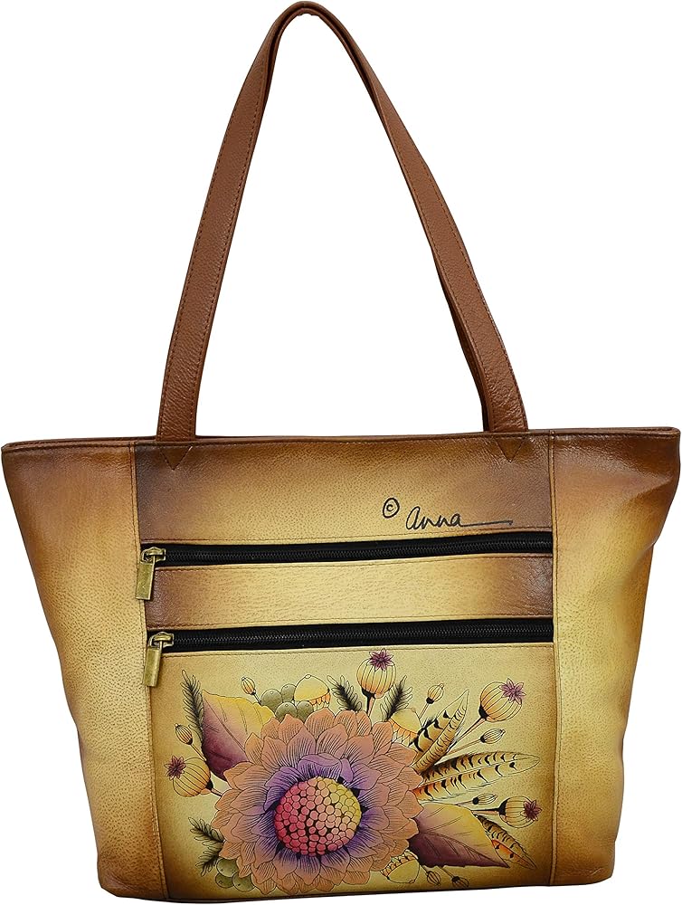 Hand-painted premium handbag: art-inspired handbags for women; this premium leather large tote gets softer and more supple with use; top zipper entry and two rear zippered pockets keeps contents securely in place